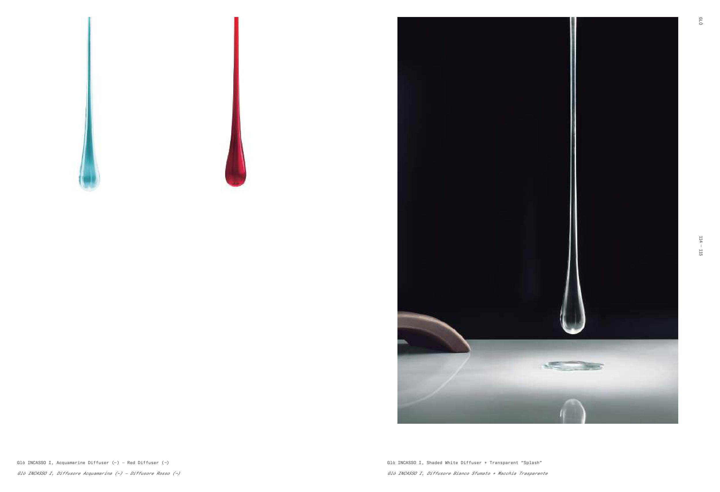 Glò INCASSO I, Acquamarine Diffuser (←) — Red Diffuser (→)
