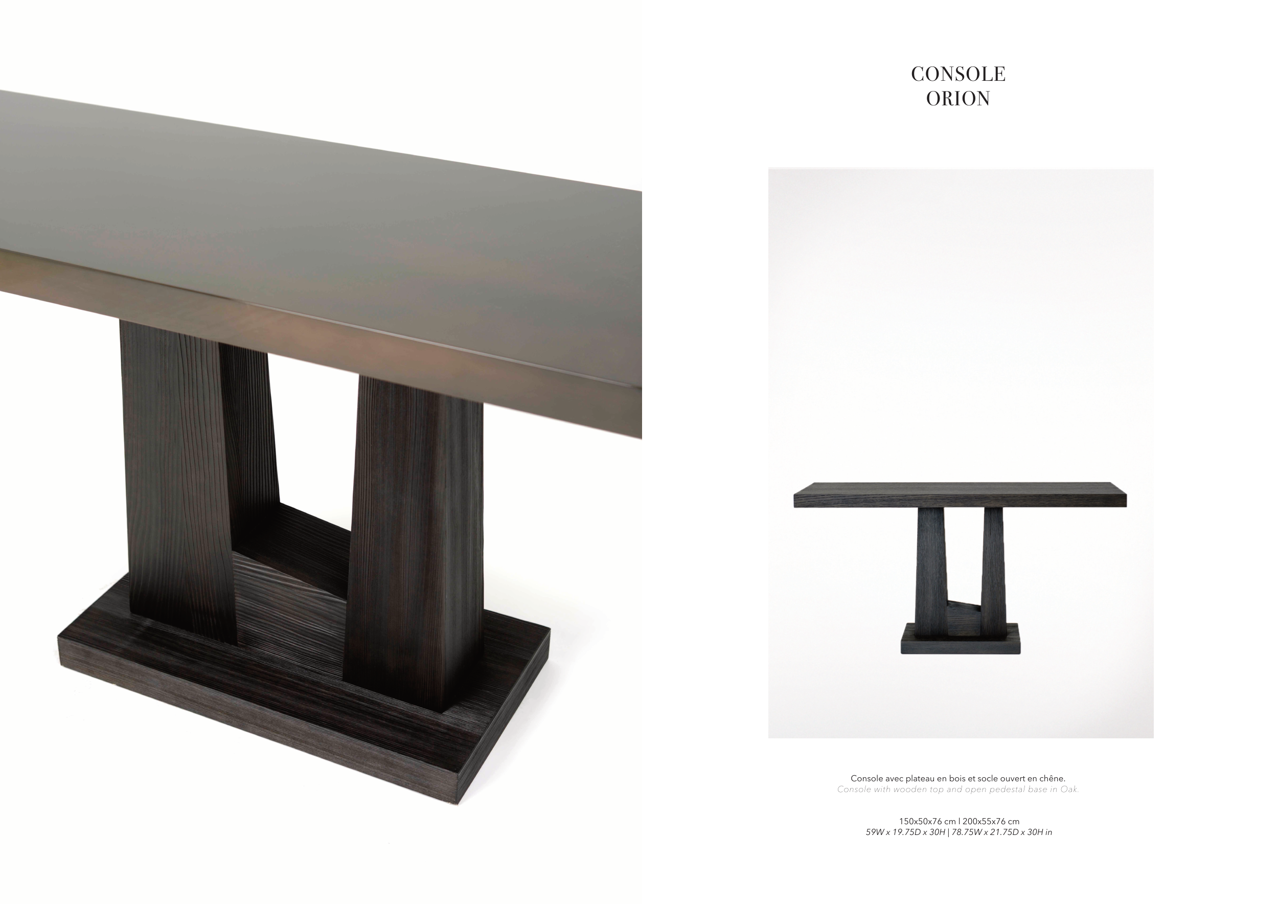 Console avec plateau en bois et socle ouvert en chêne.