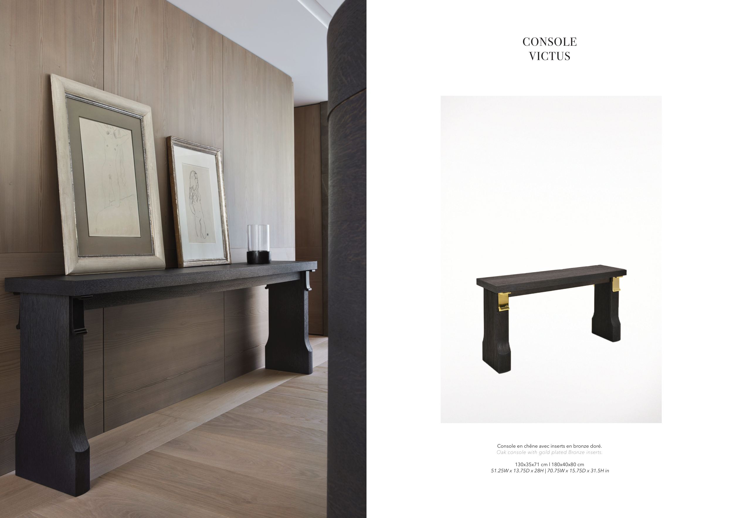 Oak console with gold plated Bronze inserts.
