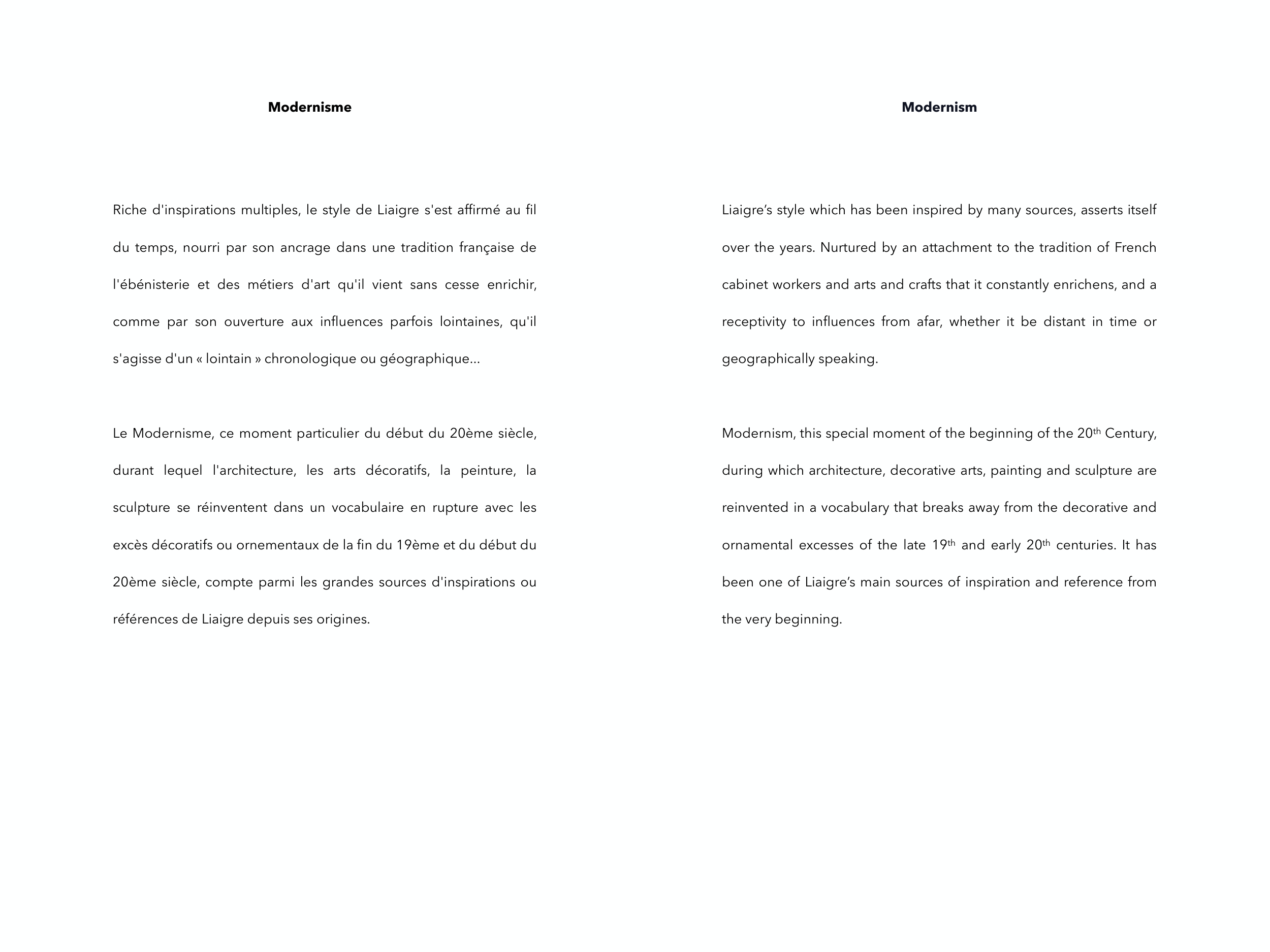 références de Liaigre depuis ses origines.