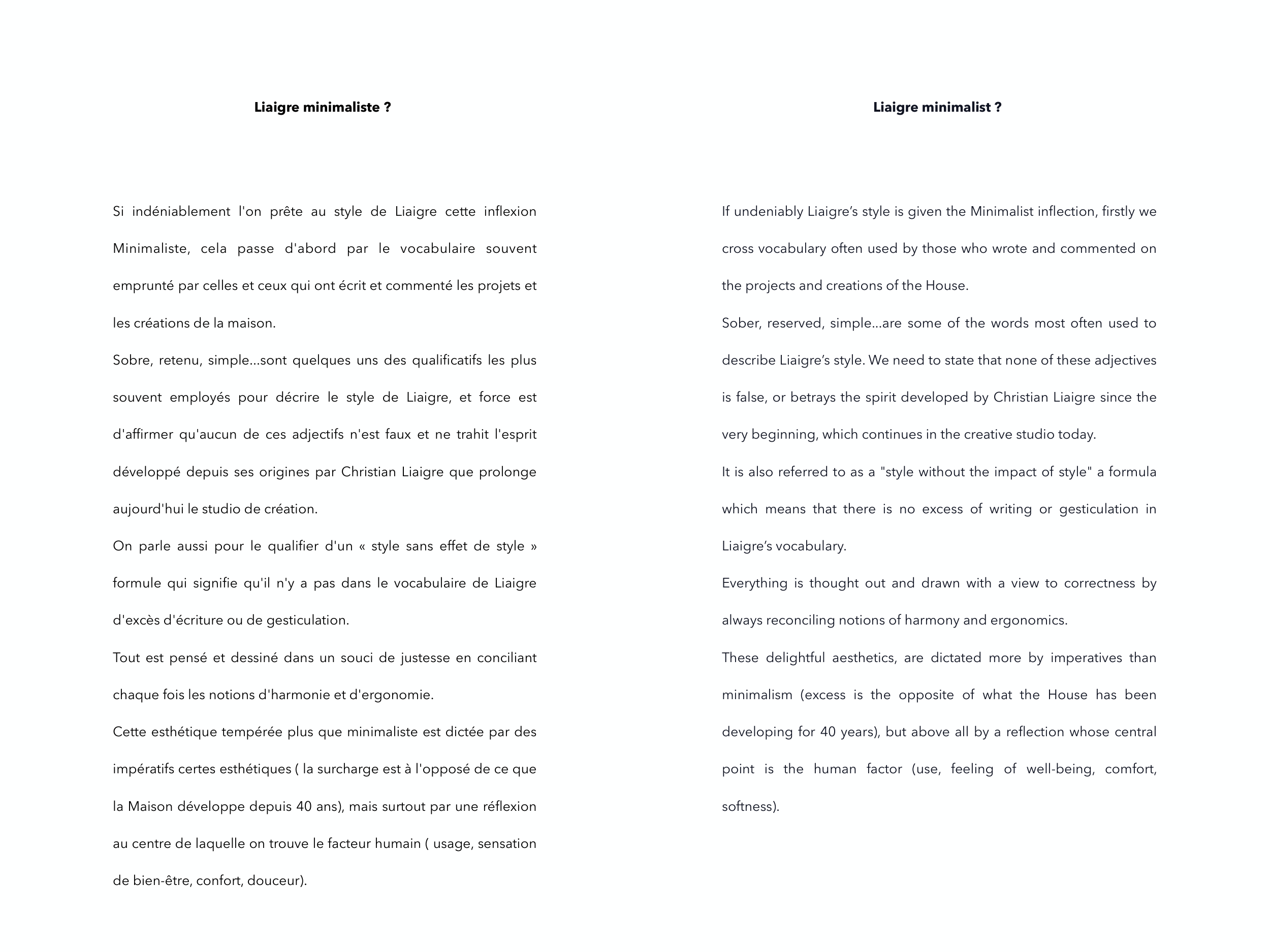 Liaigre France Lead time 80 days
