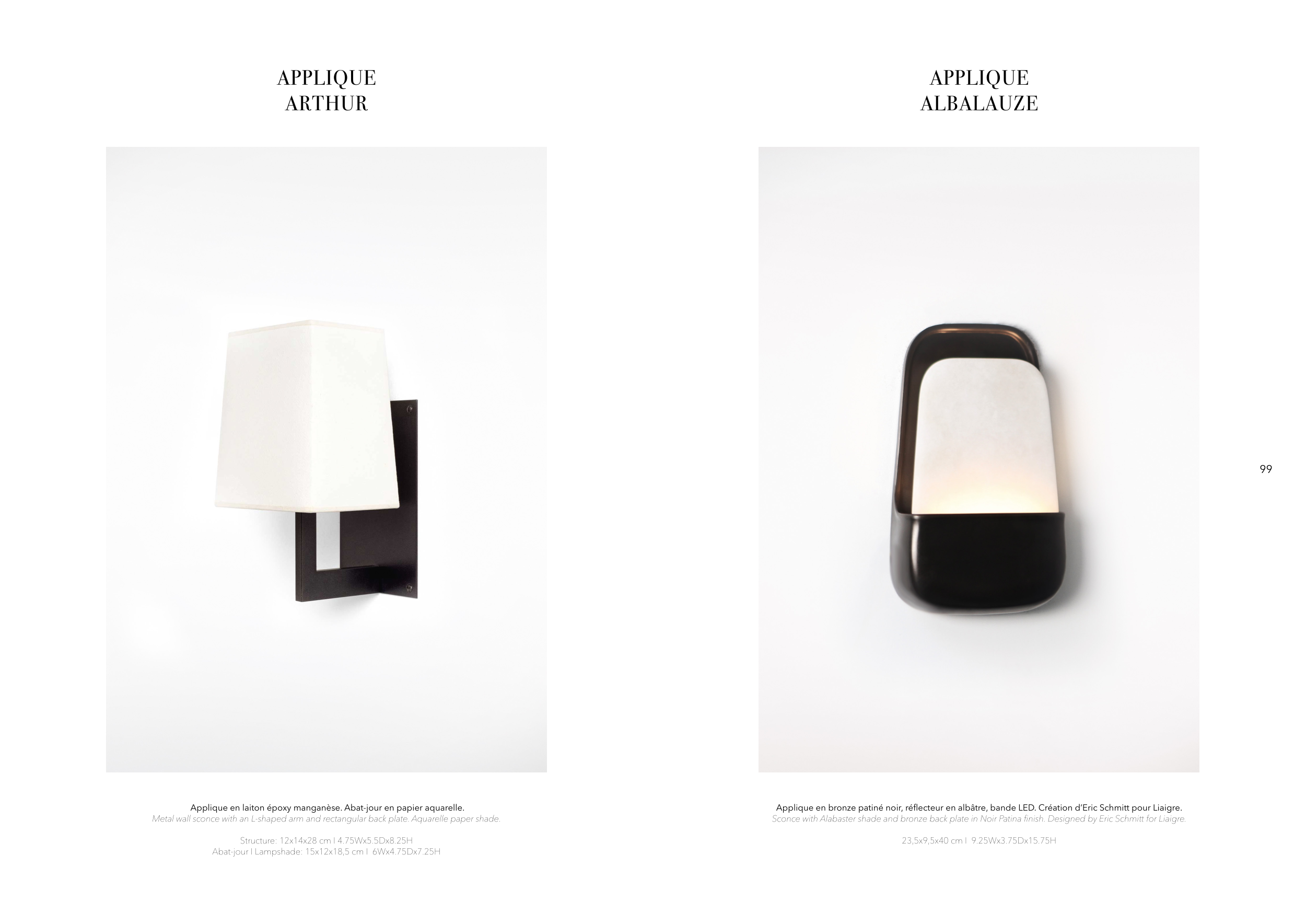Applique en bronze patiné noir, réflecteur en albâtre, bande LED. Création d’Eric Schmitt pour Liaigre.