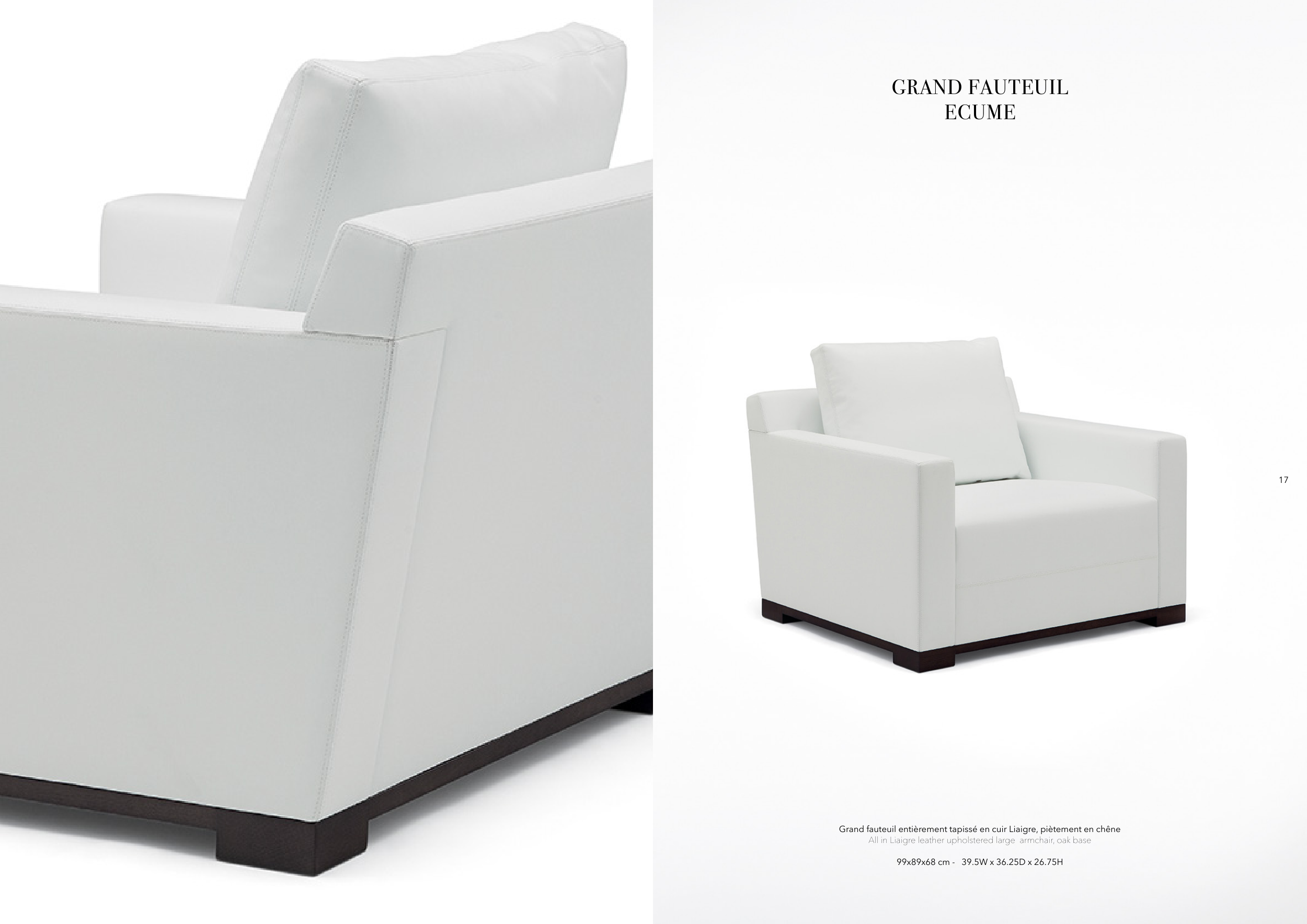 All in Liaigre leather upholstered large armchair, oak base