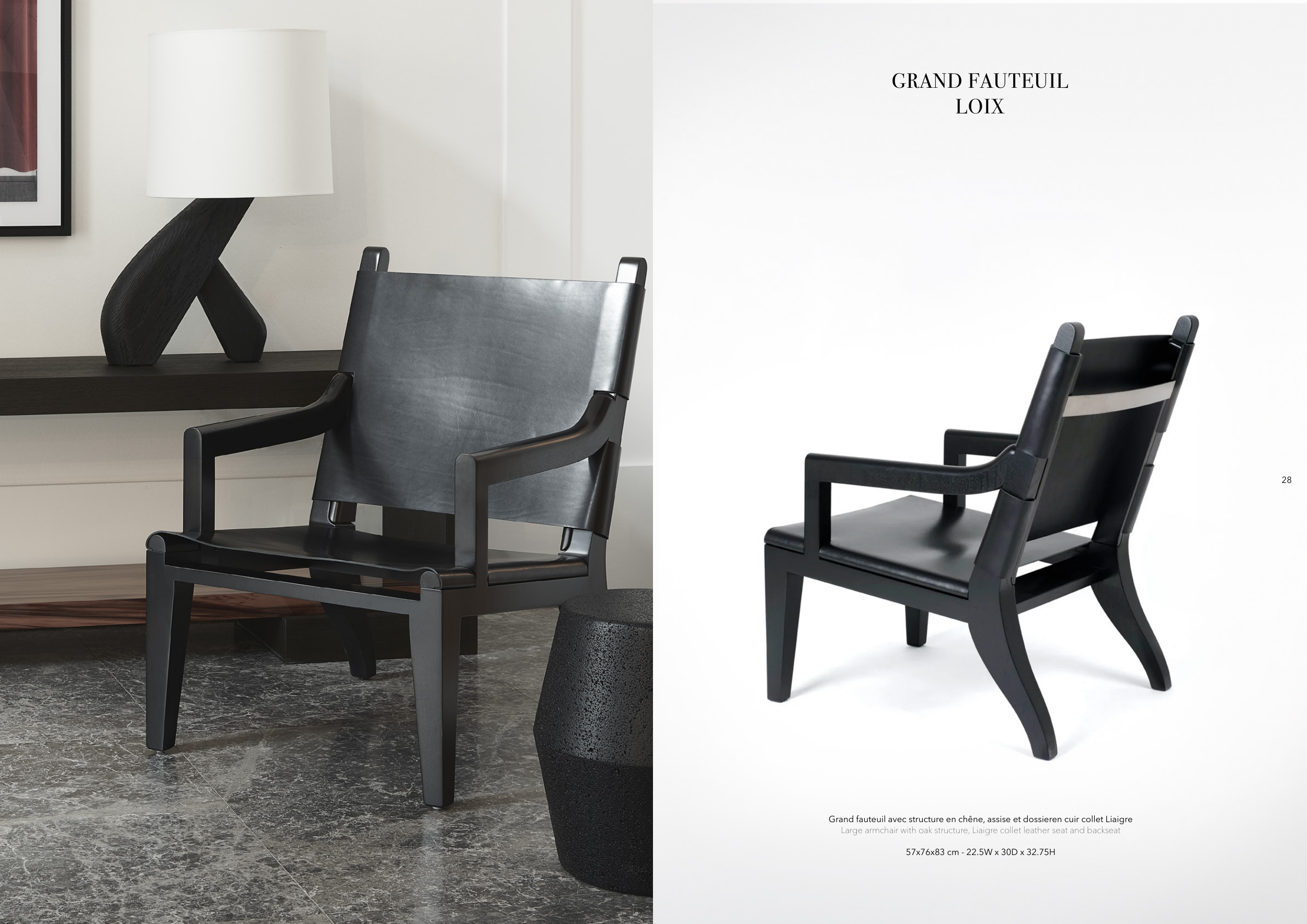Grand fauteuil avec structure en chêne, assise et dossieren cuir collet Liaigre