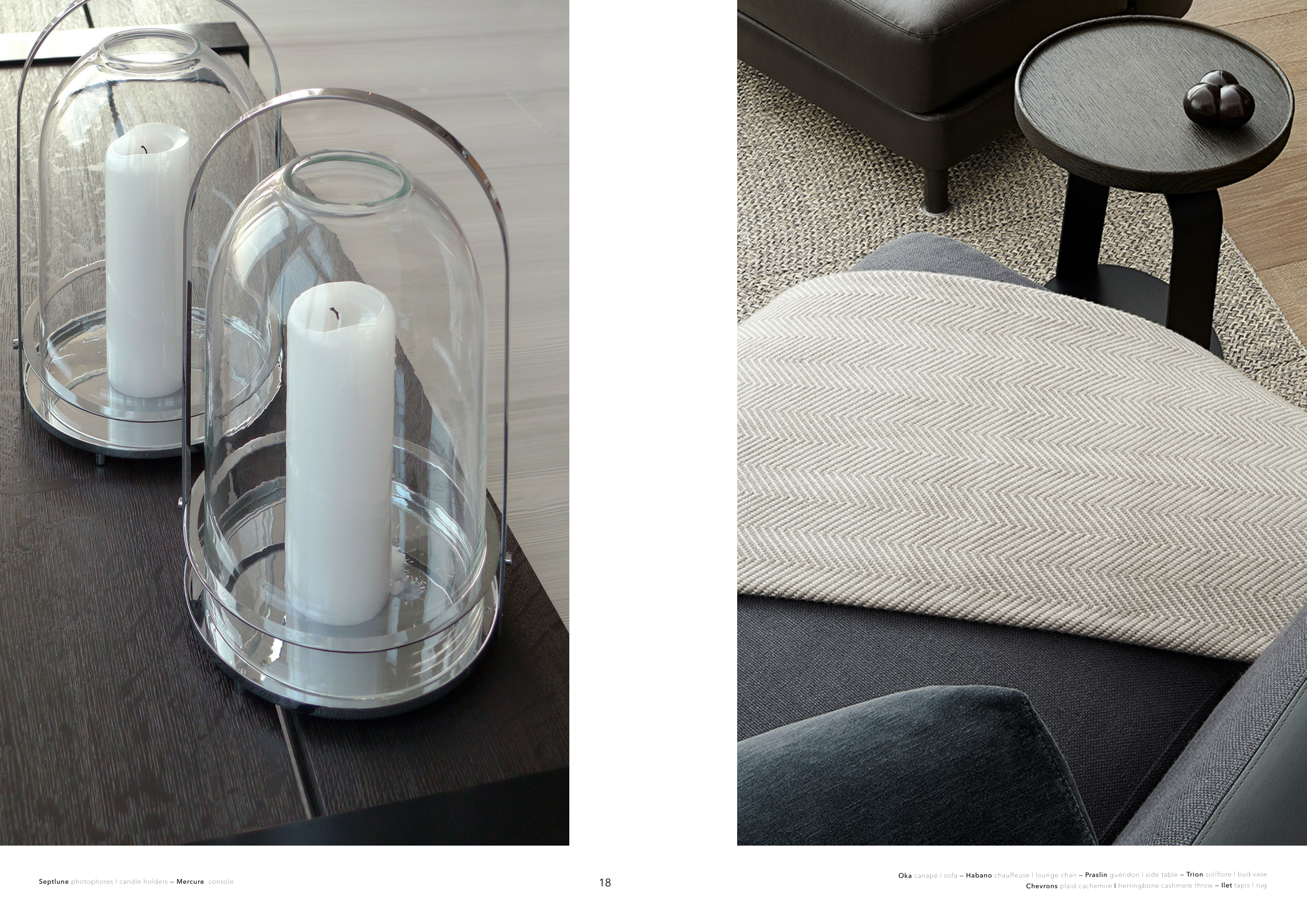 Oka canapé I sofa — Habano chauffeuse I lounge chair — Praslin guéridon I side table — Trion soliflore I bud vase