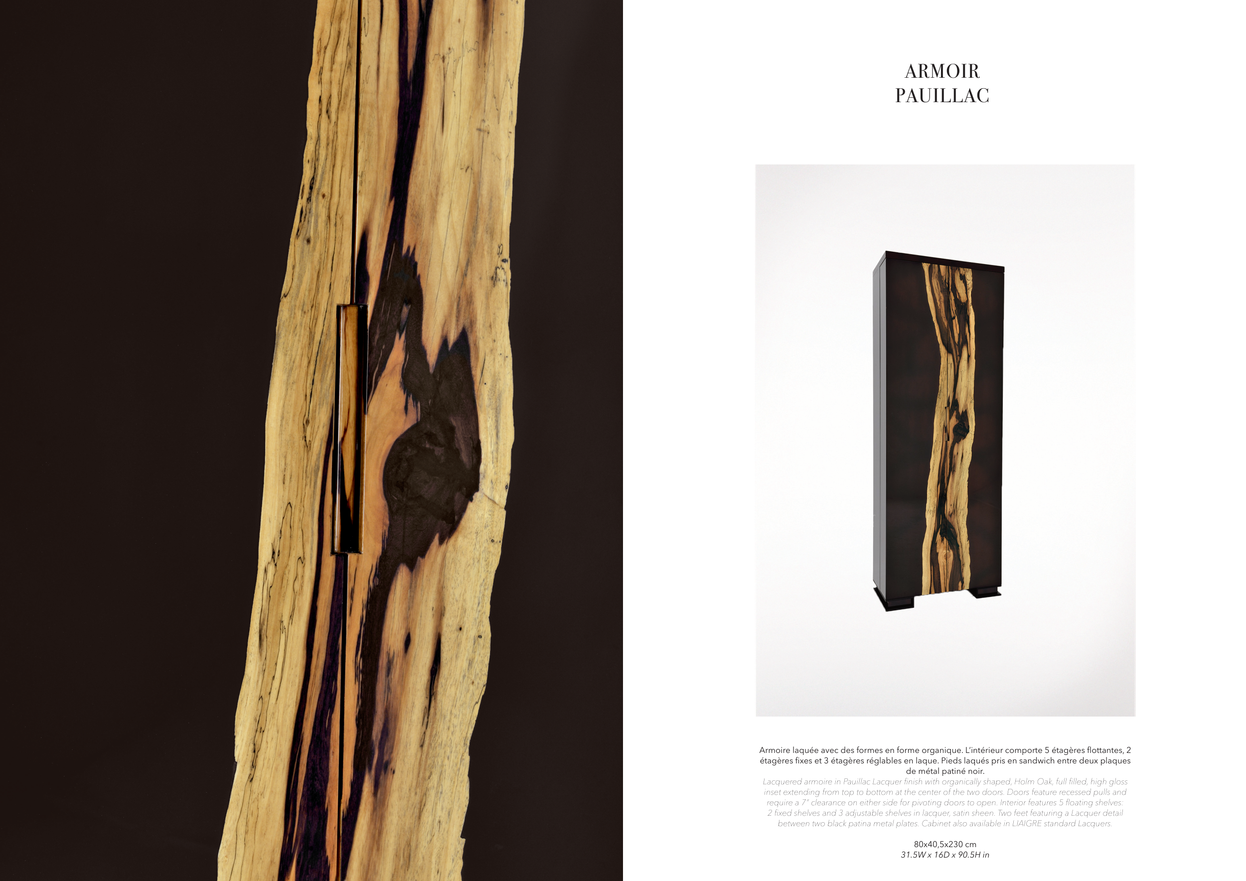 Lacquered armoire in Pauillac Lacquer finish with organically shaped, Holm Oak, full filled, high gloss