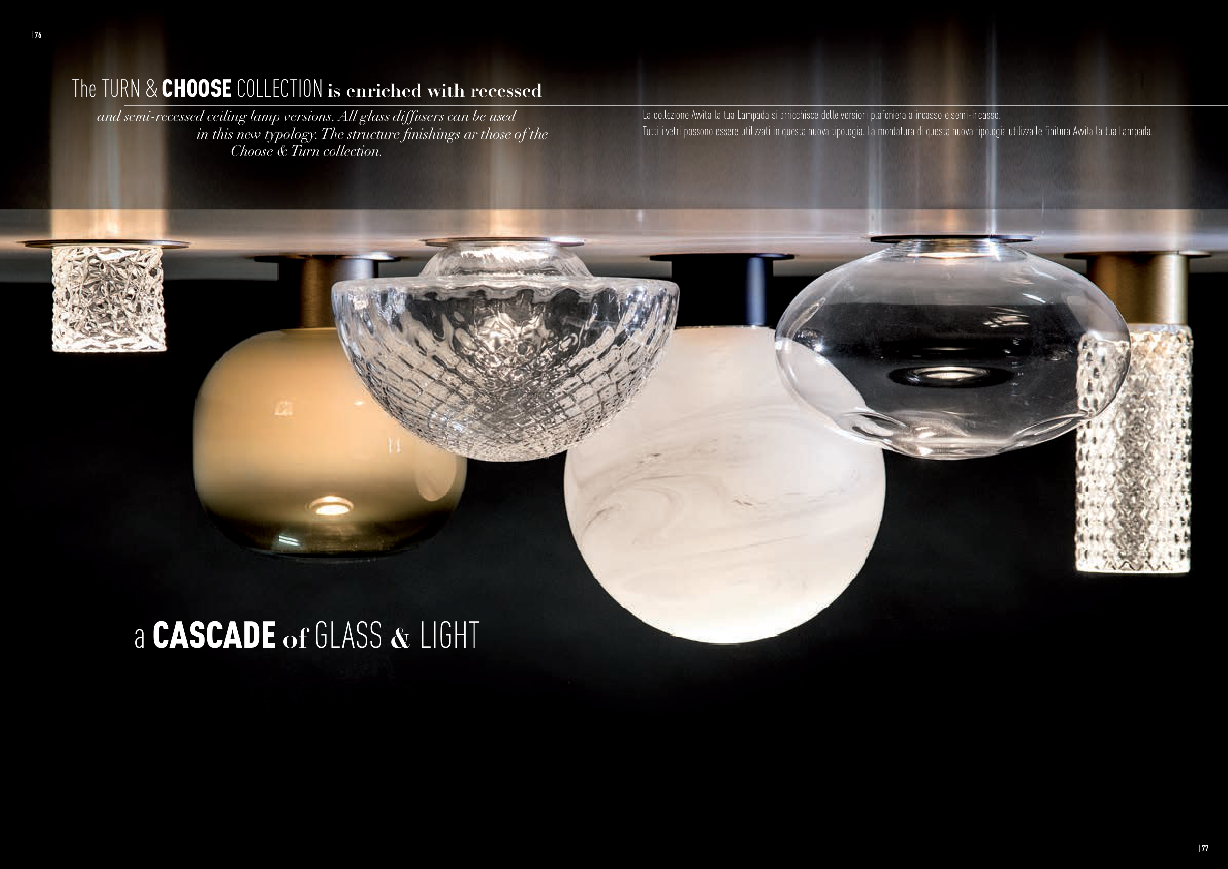 and semi-recessed ceiling lamp versions. All glass diffusers can be used