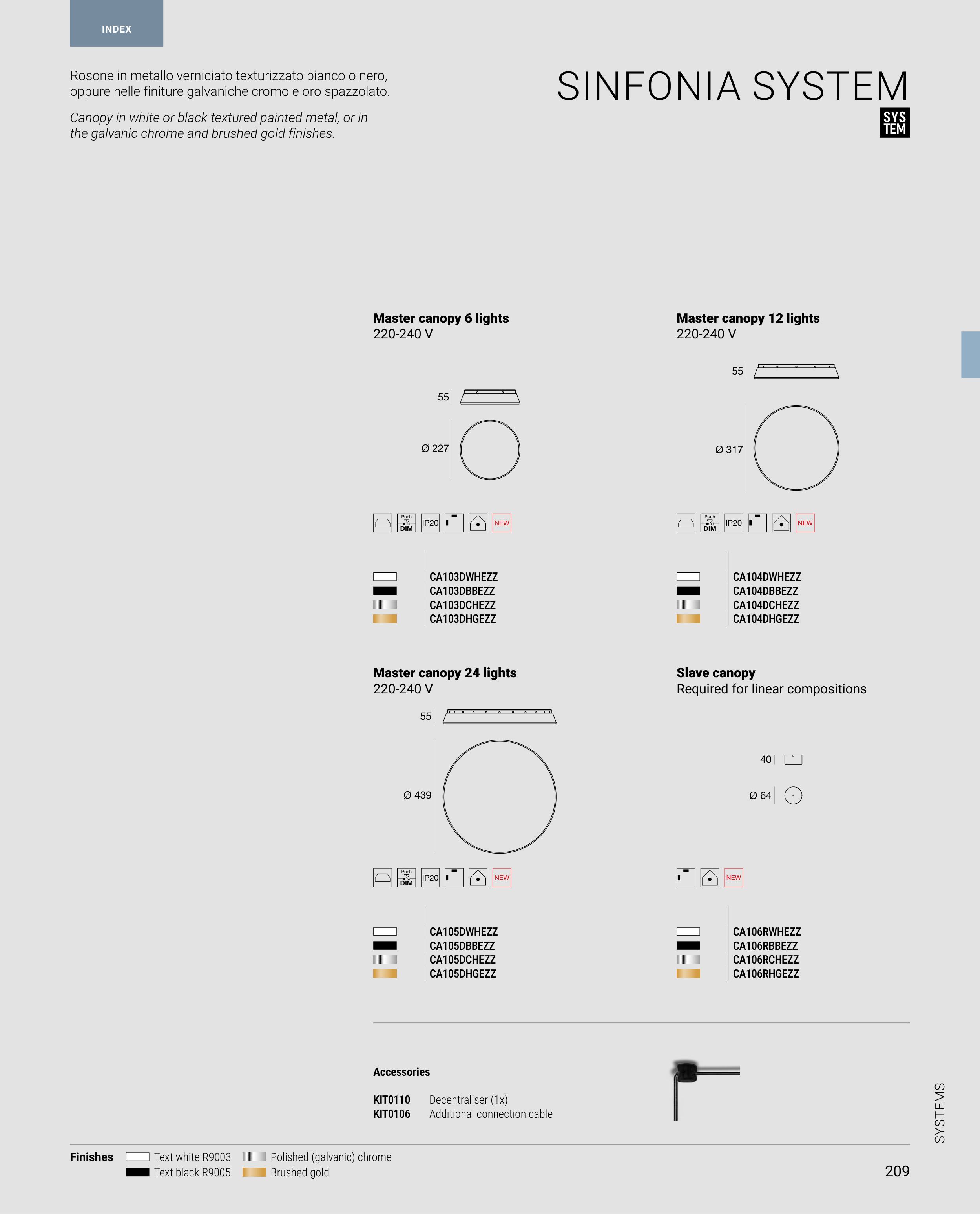 oppure nelle finiture galvaniche cromo e oro spazzolato.