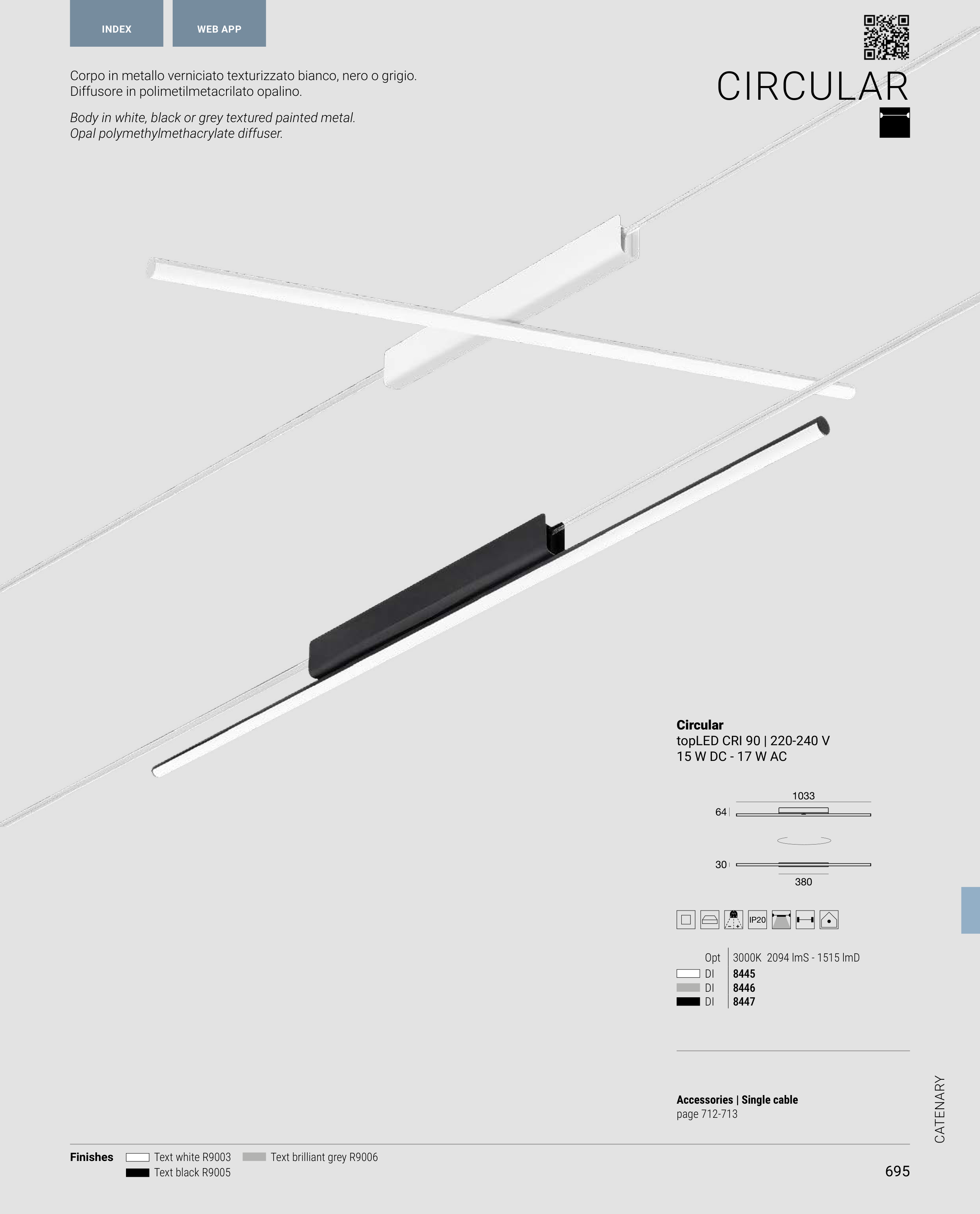 Body in white, black or grey textured painted metal.
