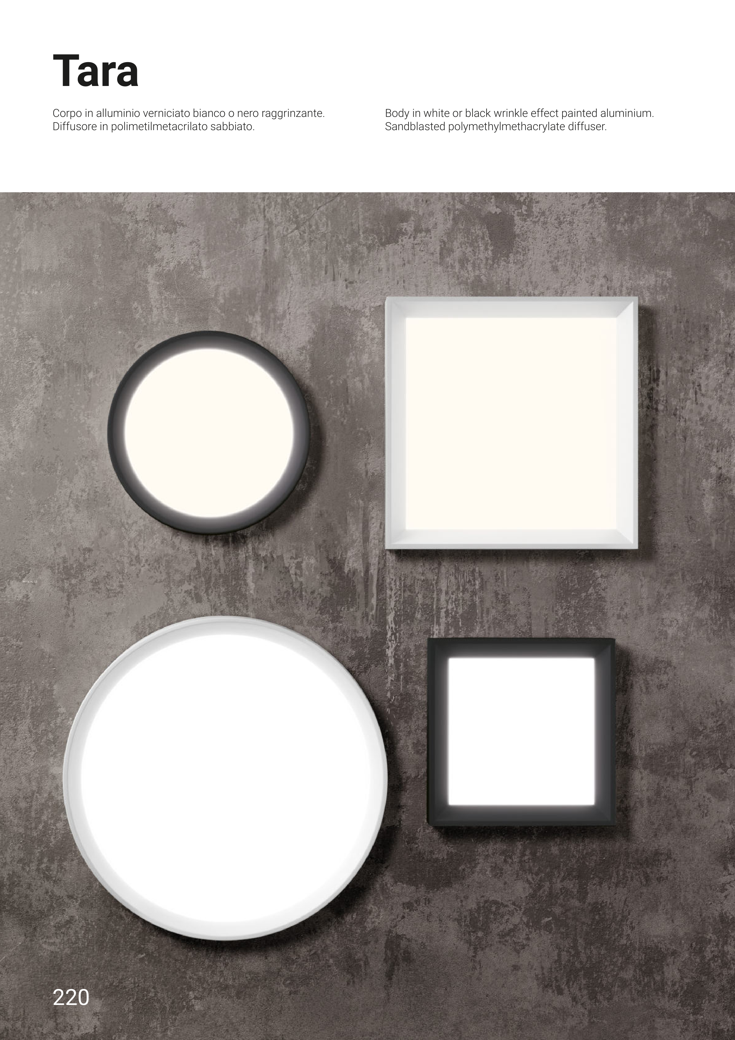 Corpo in alluminio verniciato bianco o nero raggrinzante.