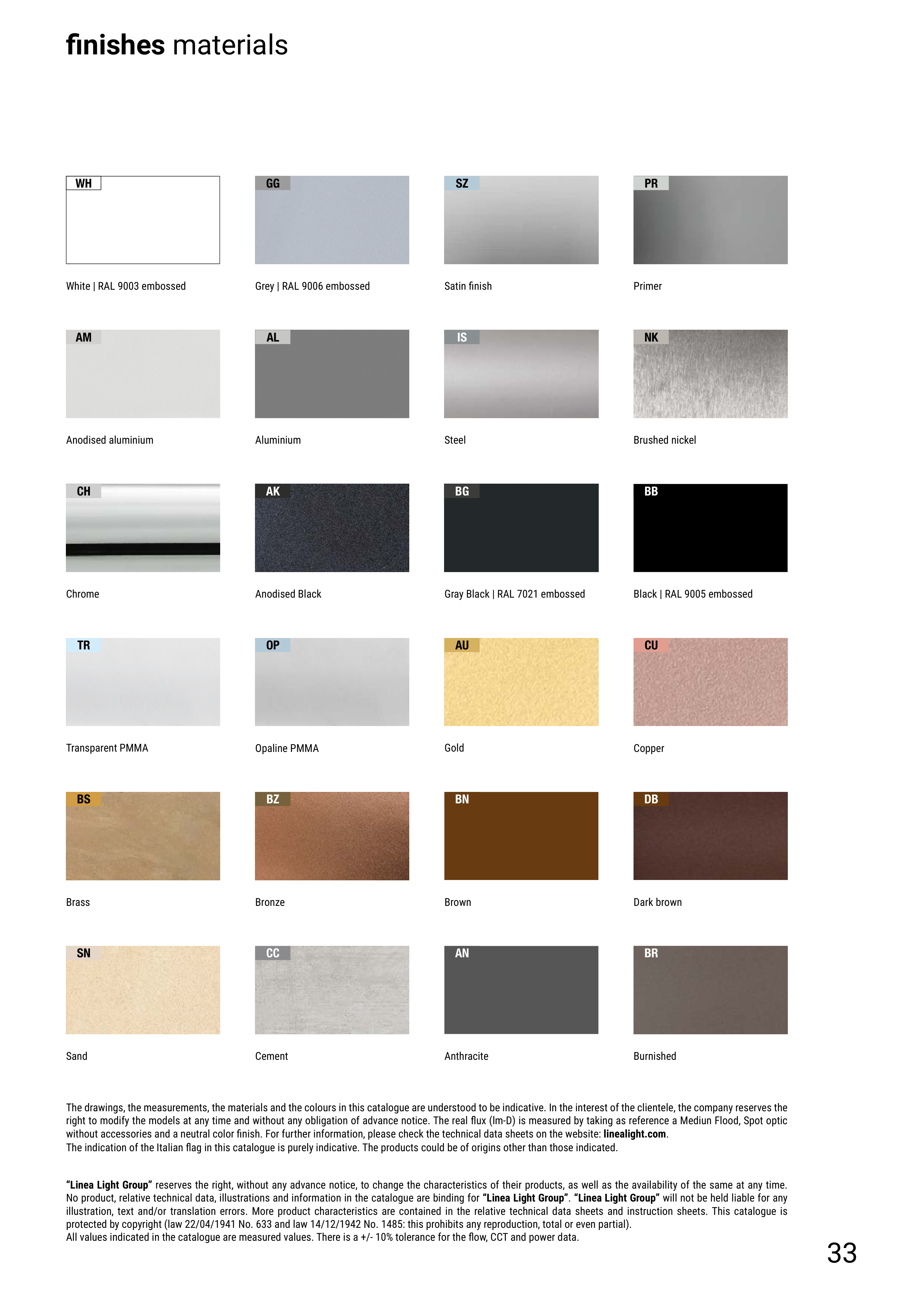 No product, relative technical data, illustrations and information in the catalogue are binding for “Linea Light Group”. “Linea Light Group” will not be held liable for any