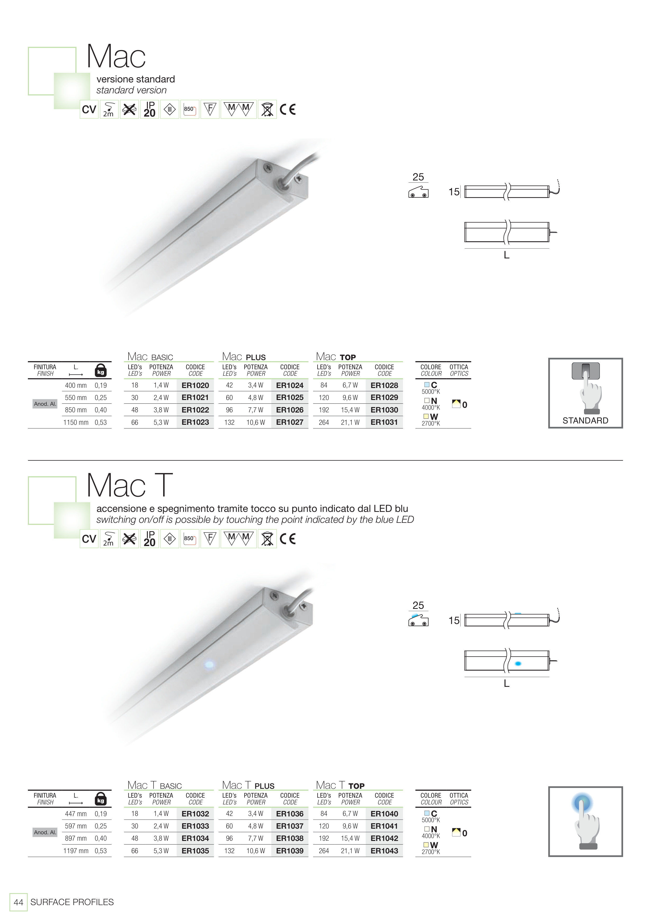 switching on/off is possible by touching the point indicated by the blue LED