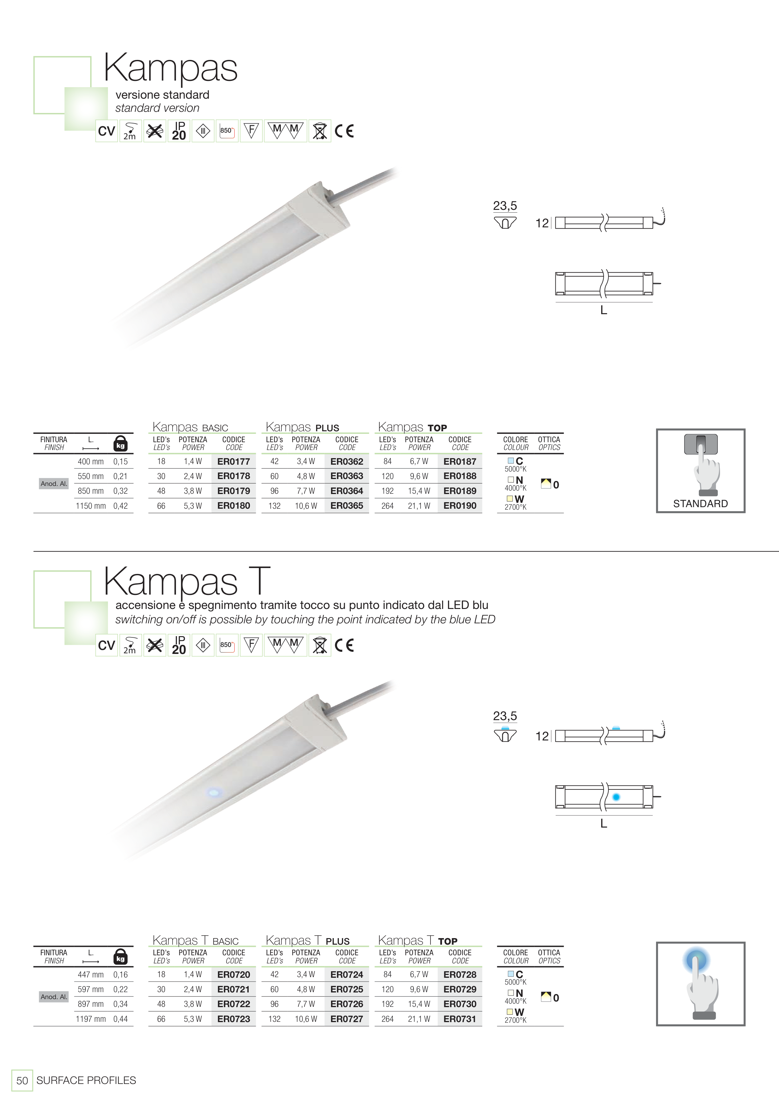 accensione e spegnimento tramite tocco su punto indicato dal LED blu