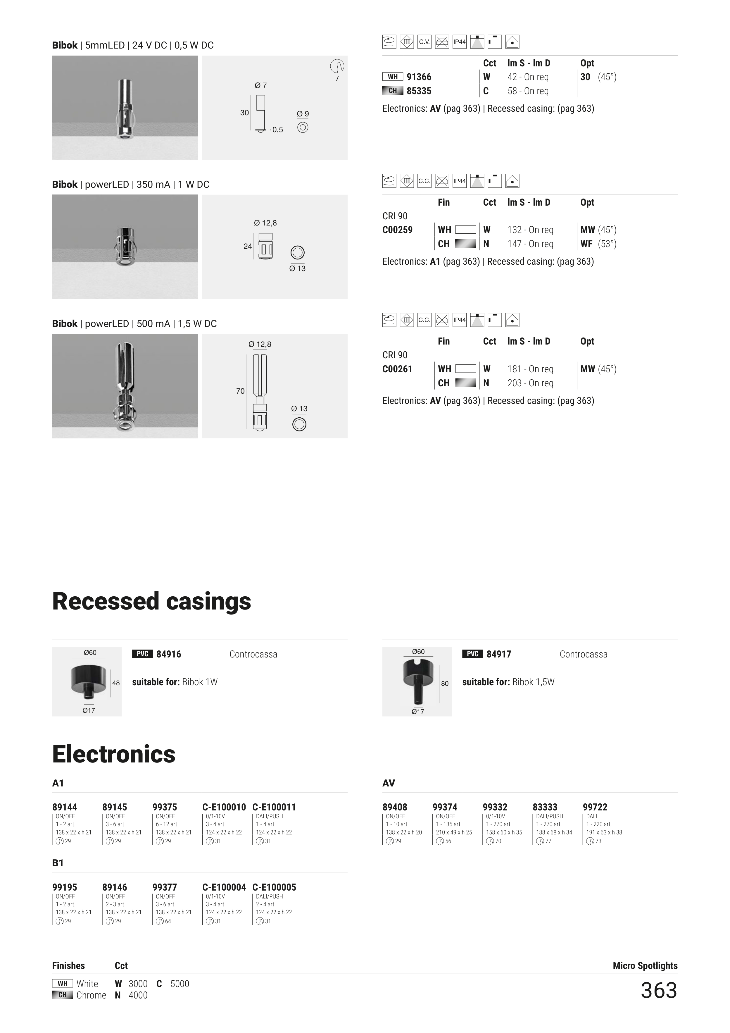 Electronics: AV (pag 363) | Recessed casing: (pag 363)