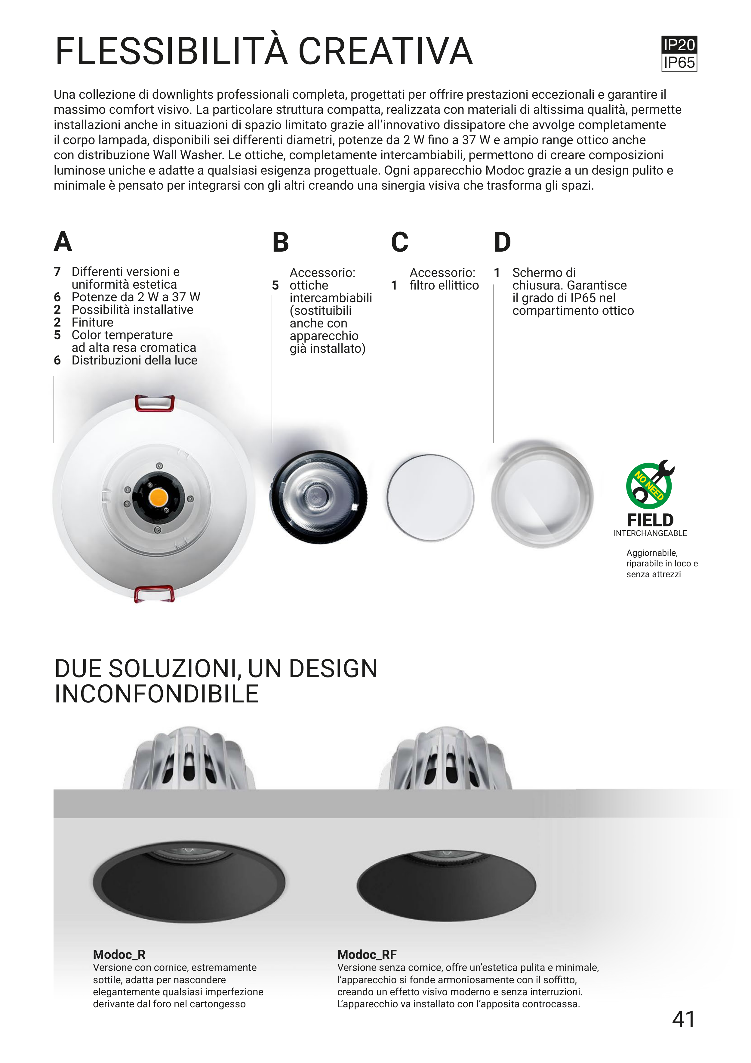 luminose uniche e adatte a qualsiasi esigenza progettuale. Ogni apparecchio Modoc grazie a un design pulito e