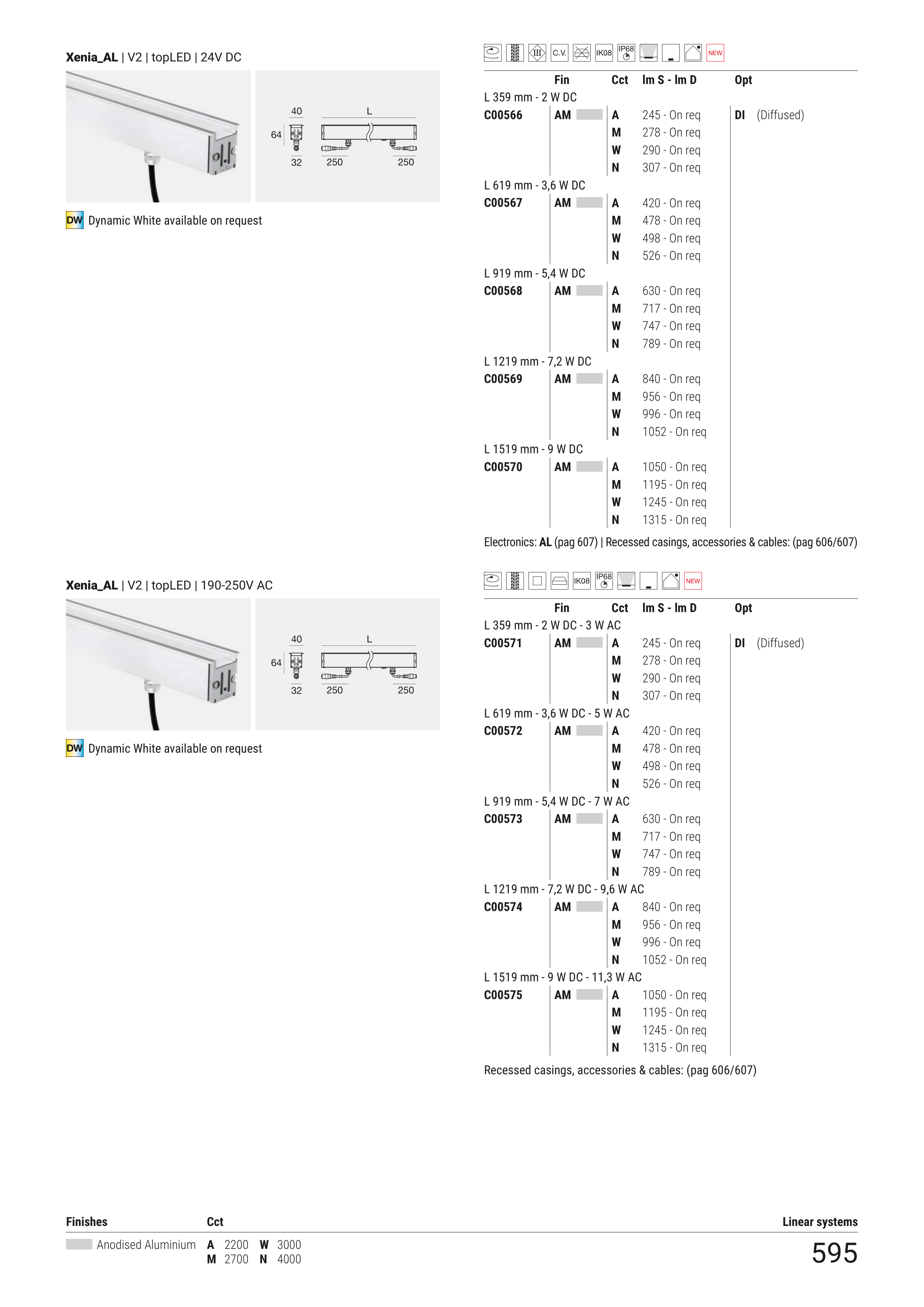 Electronics: AL (pag 607) | Recessed casings, accessories & cables: (pag 606/607)