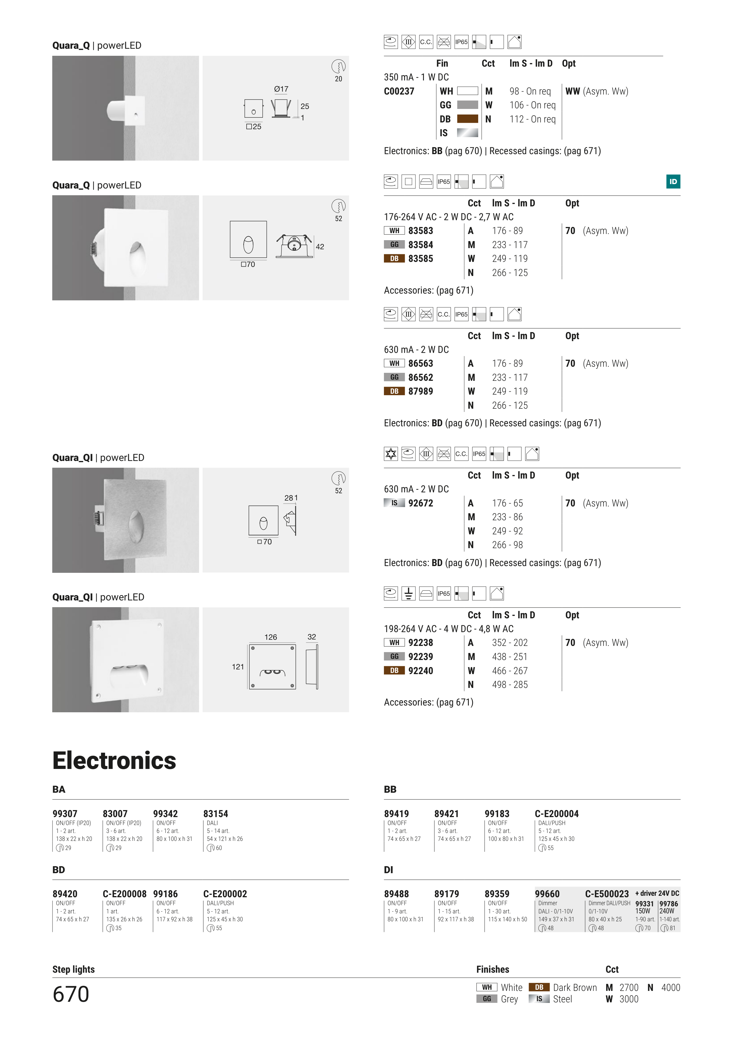 Electronics: BD (pag 670) | Recessed casings: (pag 671)
