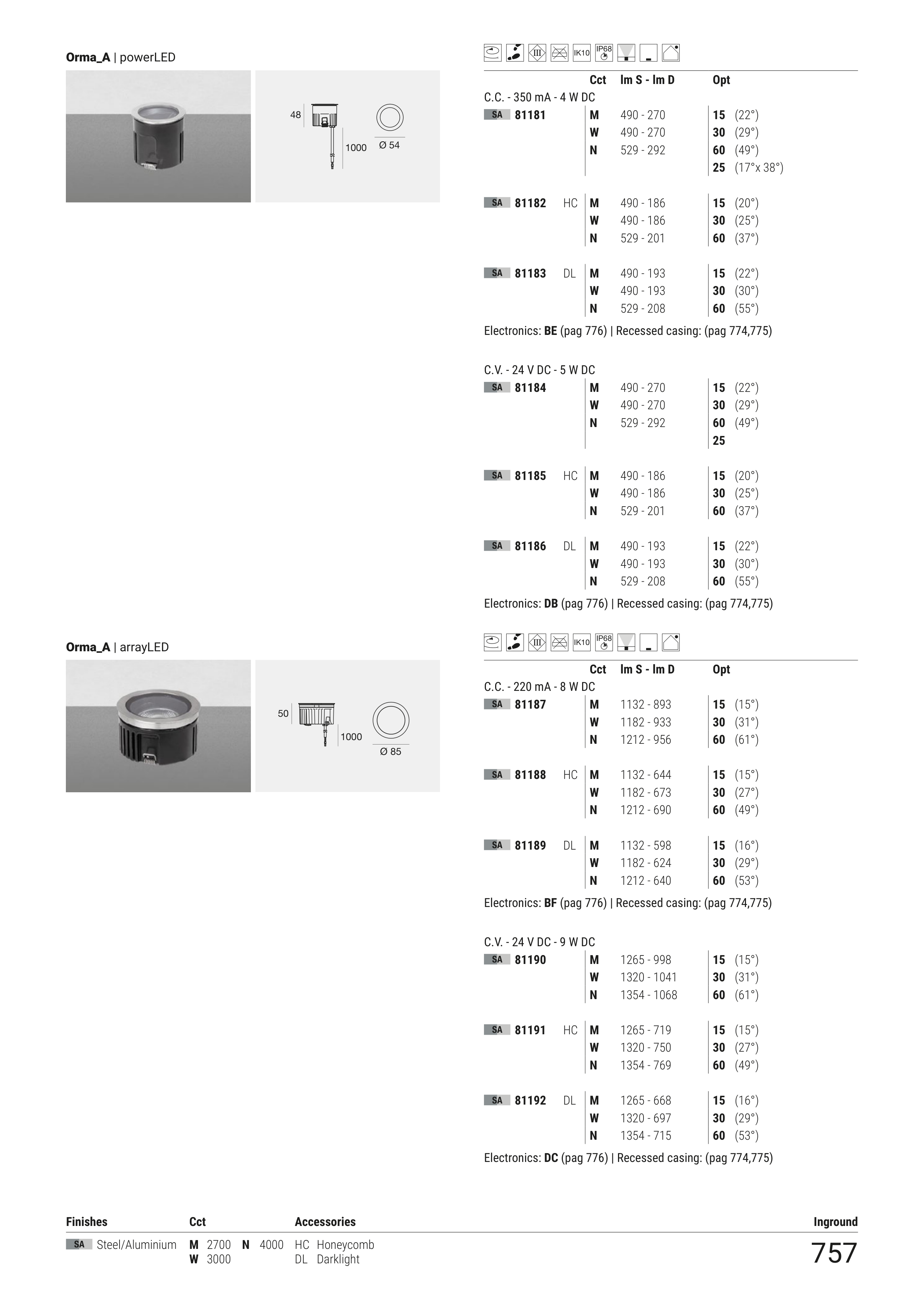 Electronics: DC (pag 776) | Recessed casing: (pag 774,775)