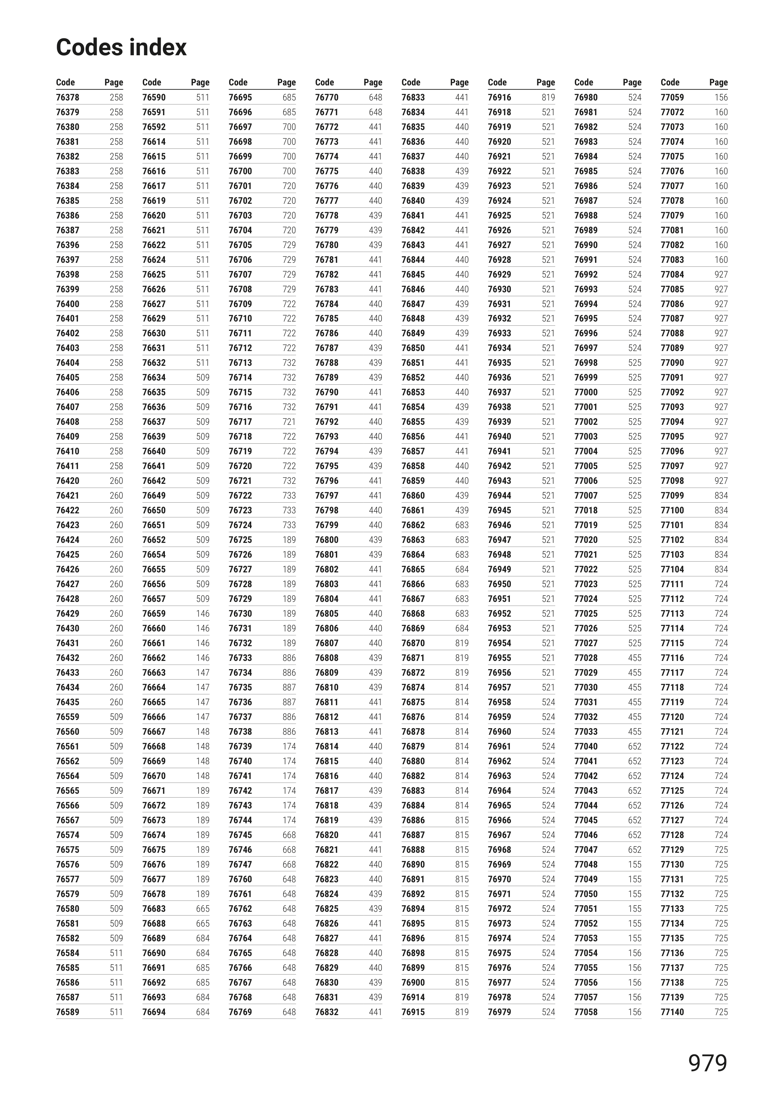 Codes index