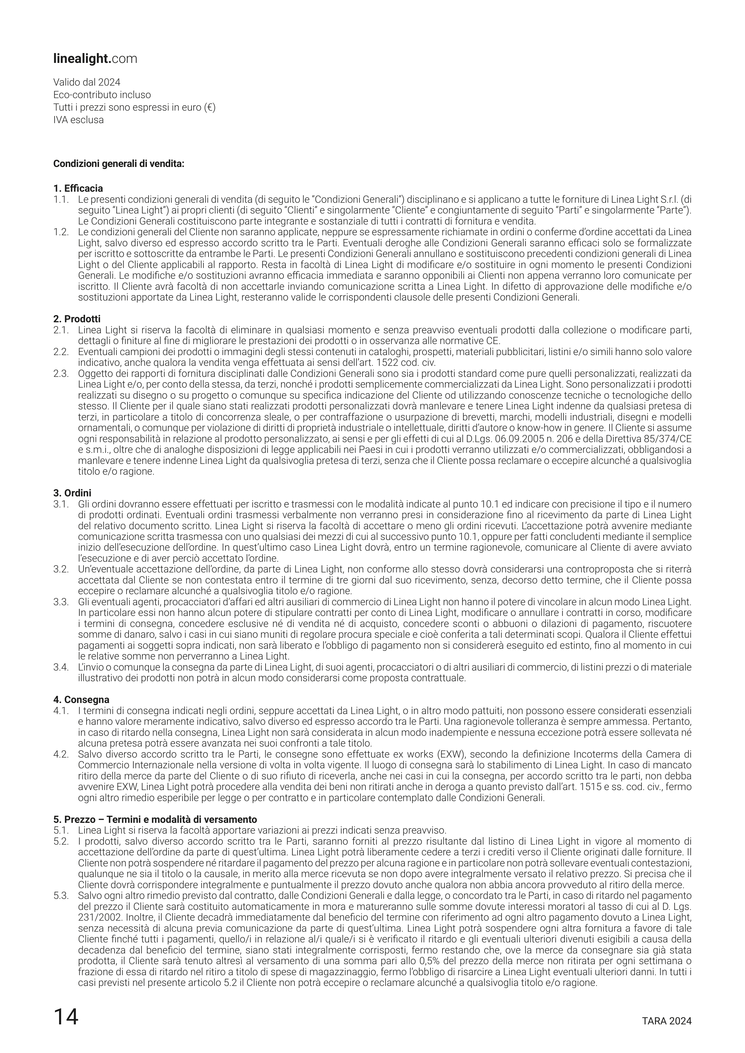 5.1. Linea Light si riserva la facoltà apportare variazioni ai prezzi indicati senza preavviso.