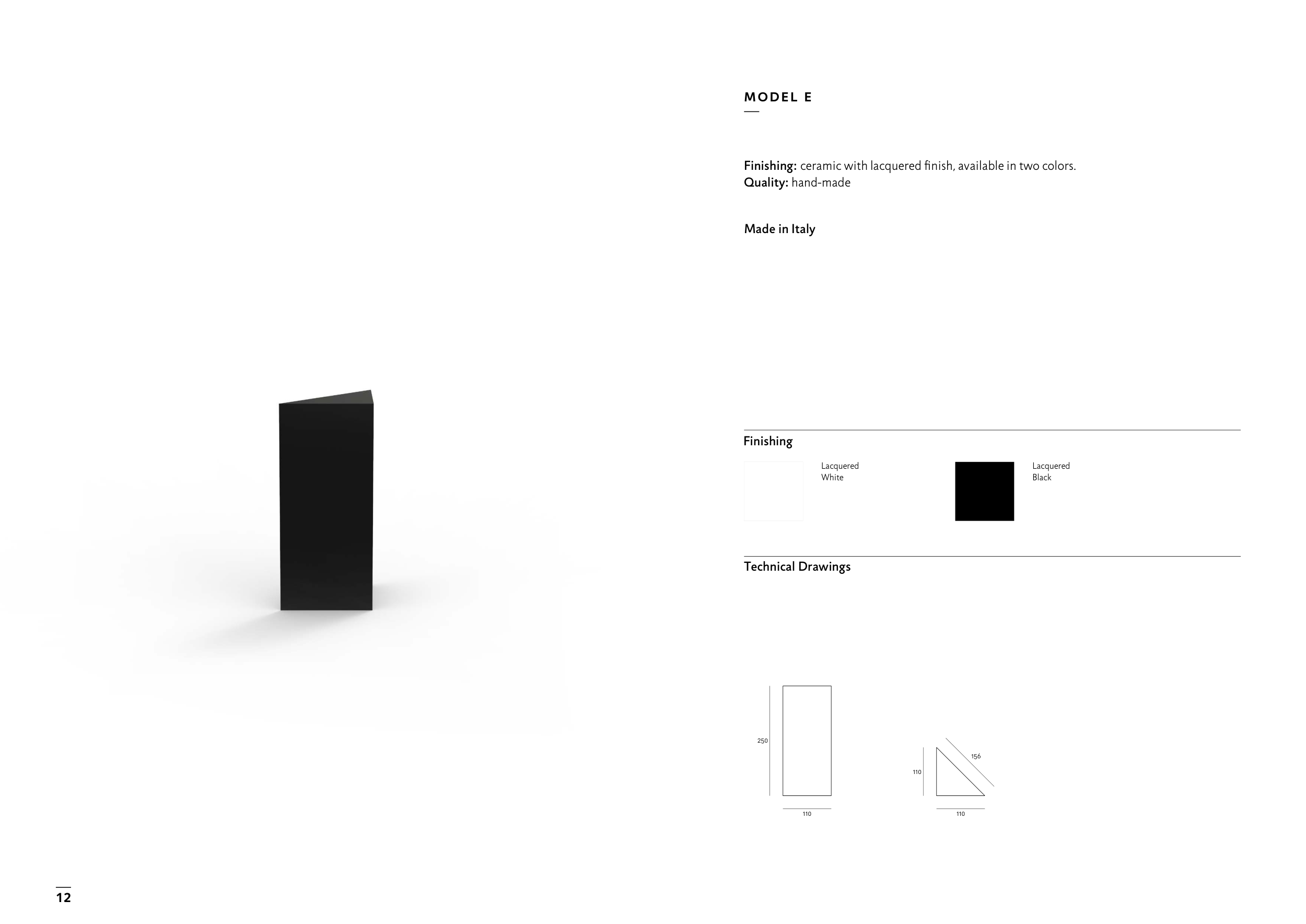 Finishing: ceramic with lacquered finish, available in two colors.