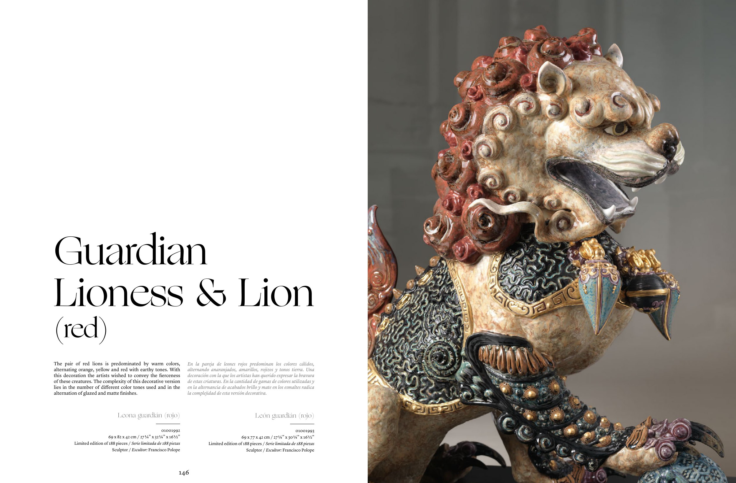 The pair of red lions is predominated by warm colors,