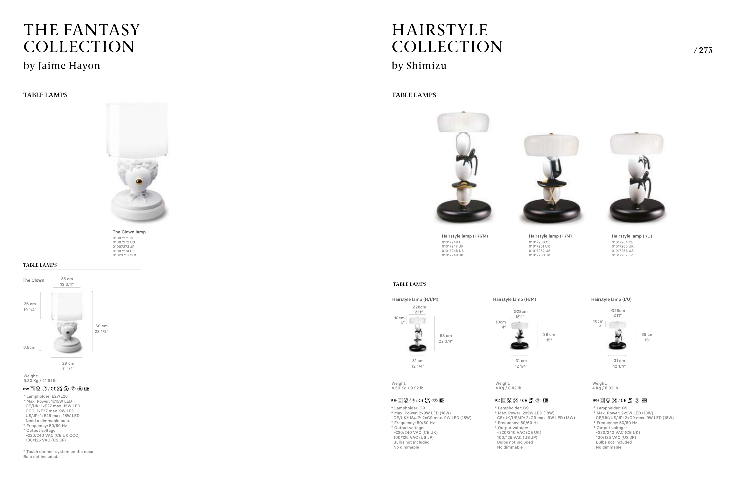 CE/UK/US/JP: 2xG9 max. 9W LED (18W)