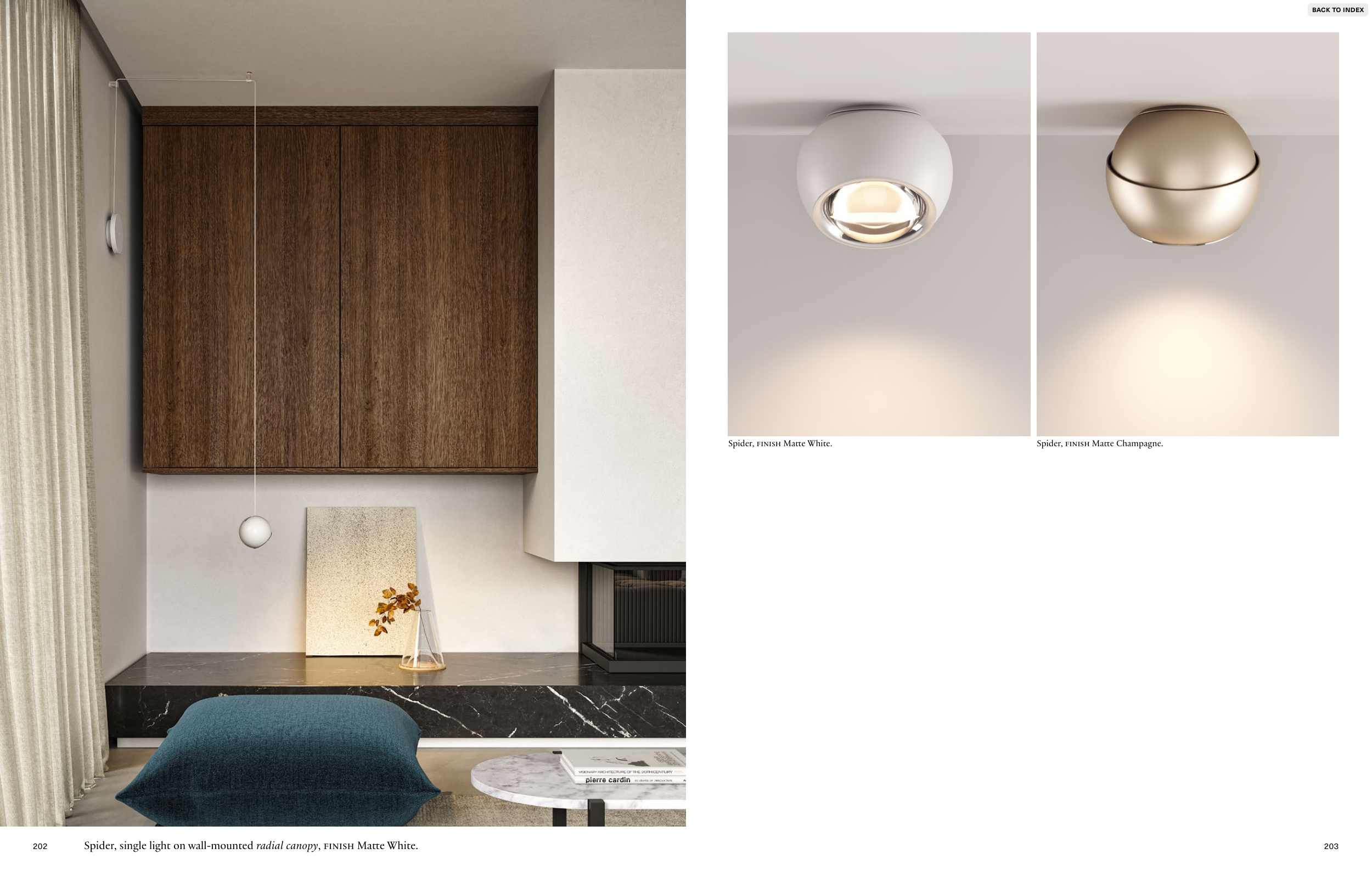 Spider, single light on wall-mounted radial canopy, FINISH Matte White.