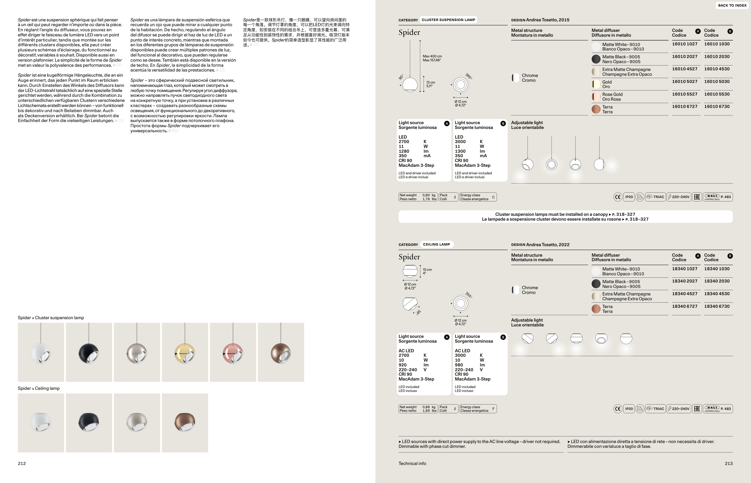 Le lampade a sospensione cluster devono essere installate su rosone ▲ p. 318–327