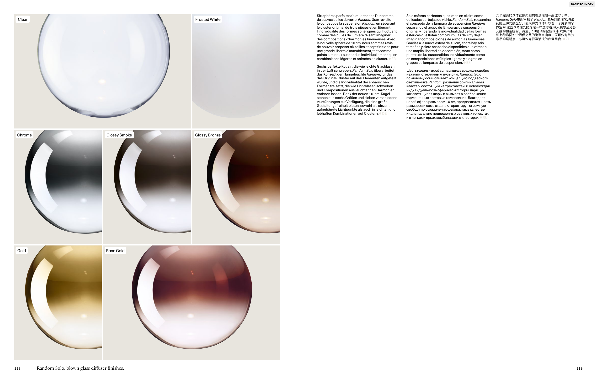 Random Solo, blown glass diffuser finishes.