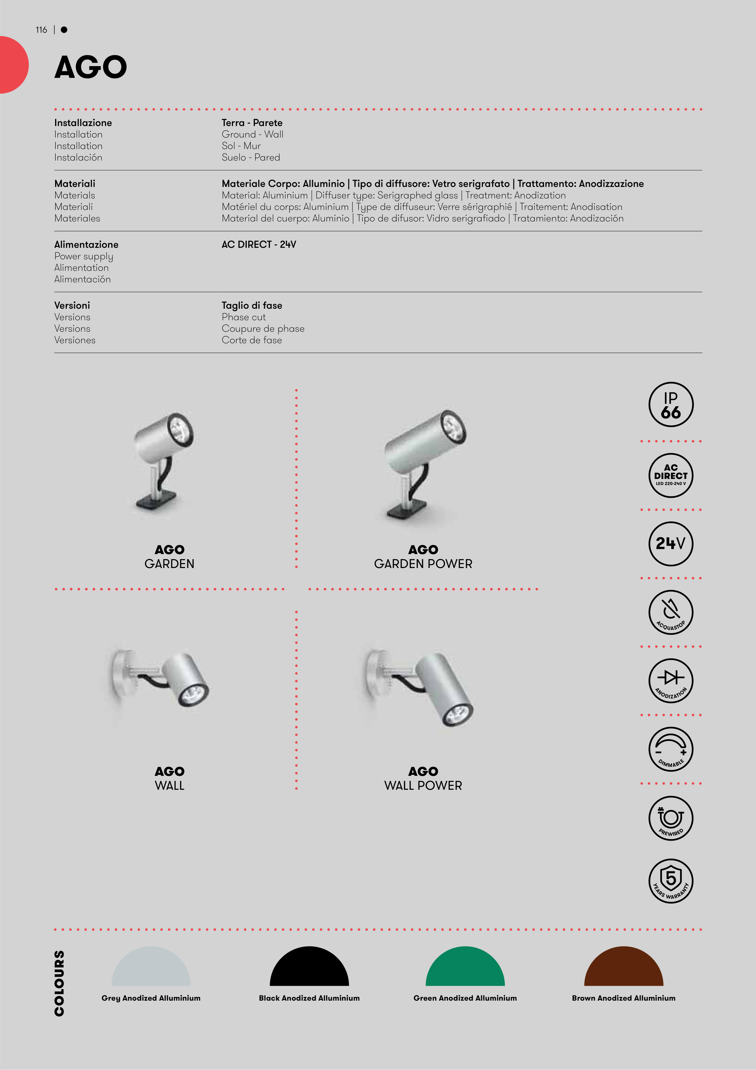 Materiale Corpo: Alluminio | Tipo di diffusore: Vetro serigrafato | Trattamento: Anodizzazione