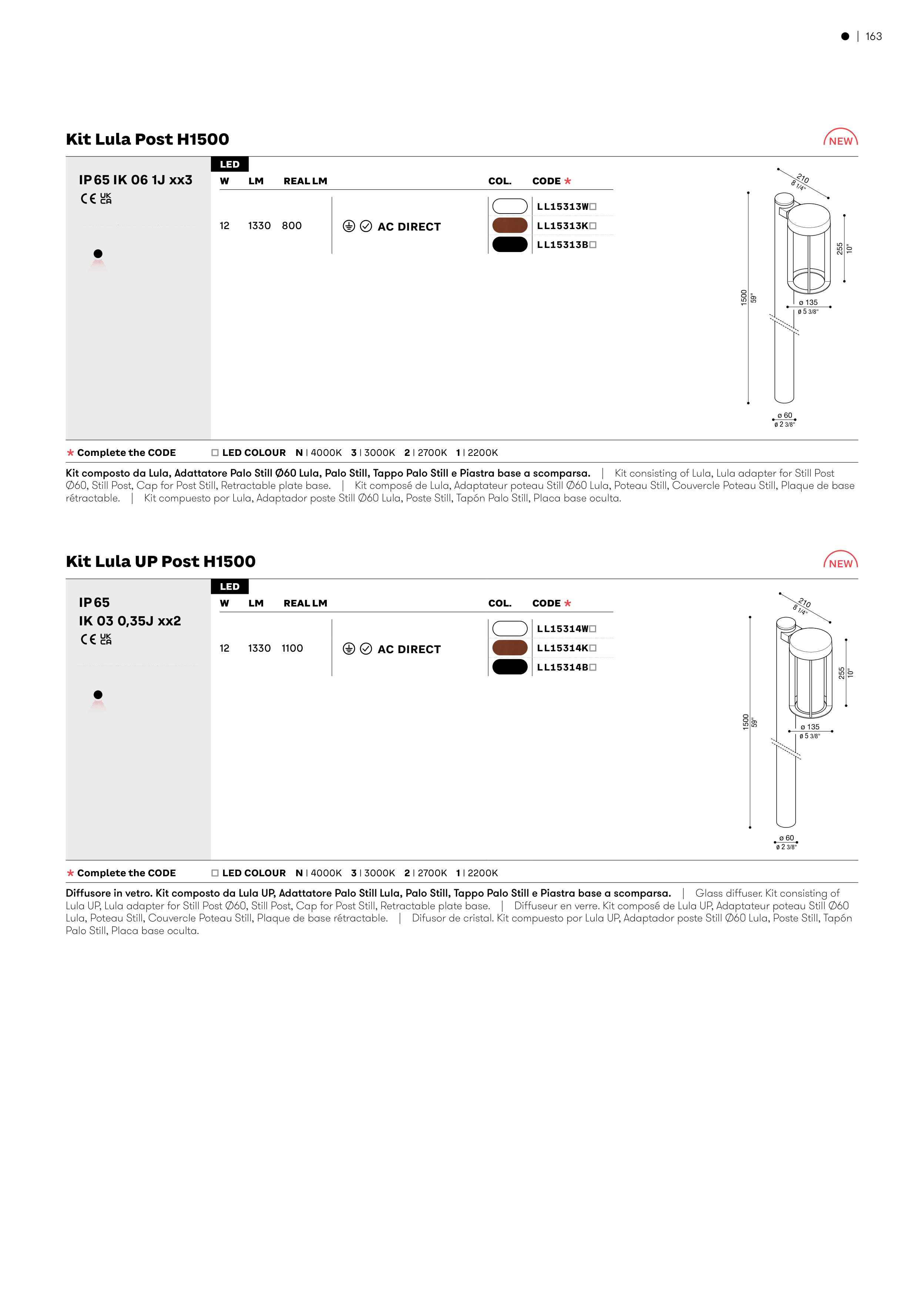 Kit composto da Lula, Adattatore Palo Still Ø60 Lula, Palo Still, Tappo Palo Still e Piastra base a scomparsa.� �� ����������������������������������������������������