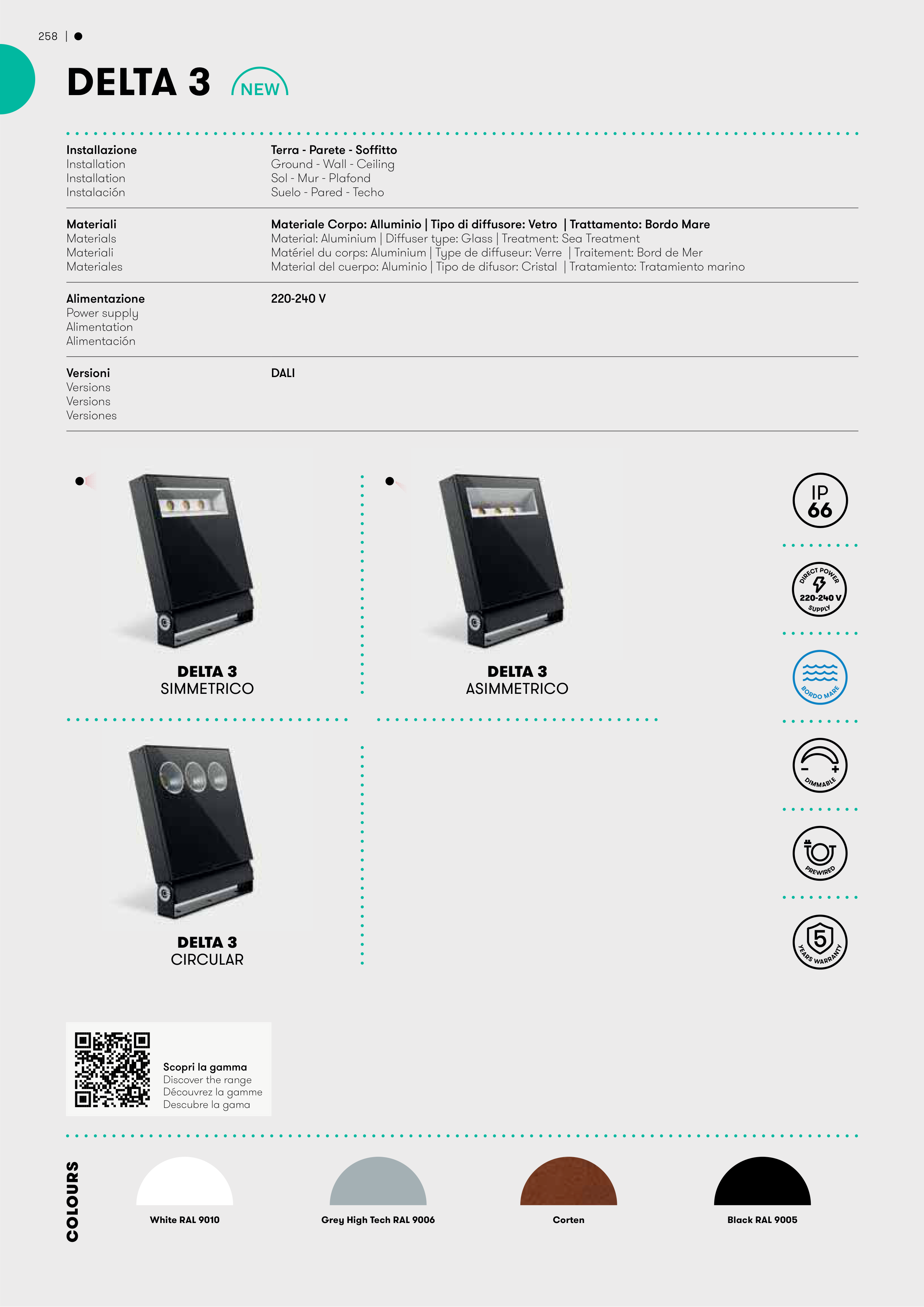 Materiale Corpo: Alluminio | Tipo di diffusore: Vetro | Trattamento: Bordo Mare