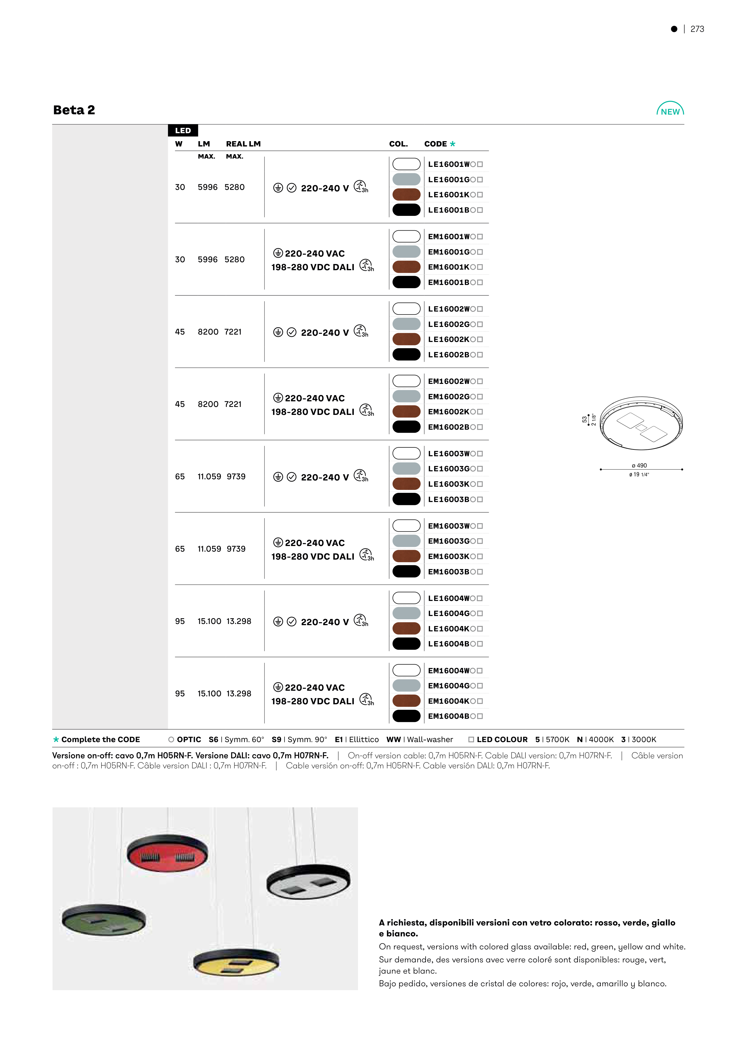 È OPTIC S6 | Symm. 60° S9 | Symm. 90° E1 | Ellittico WW | Wall-washer Ä LED COLOUR 5 | 5700K N | 4000K 3 | 3000K