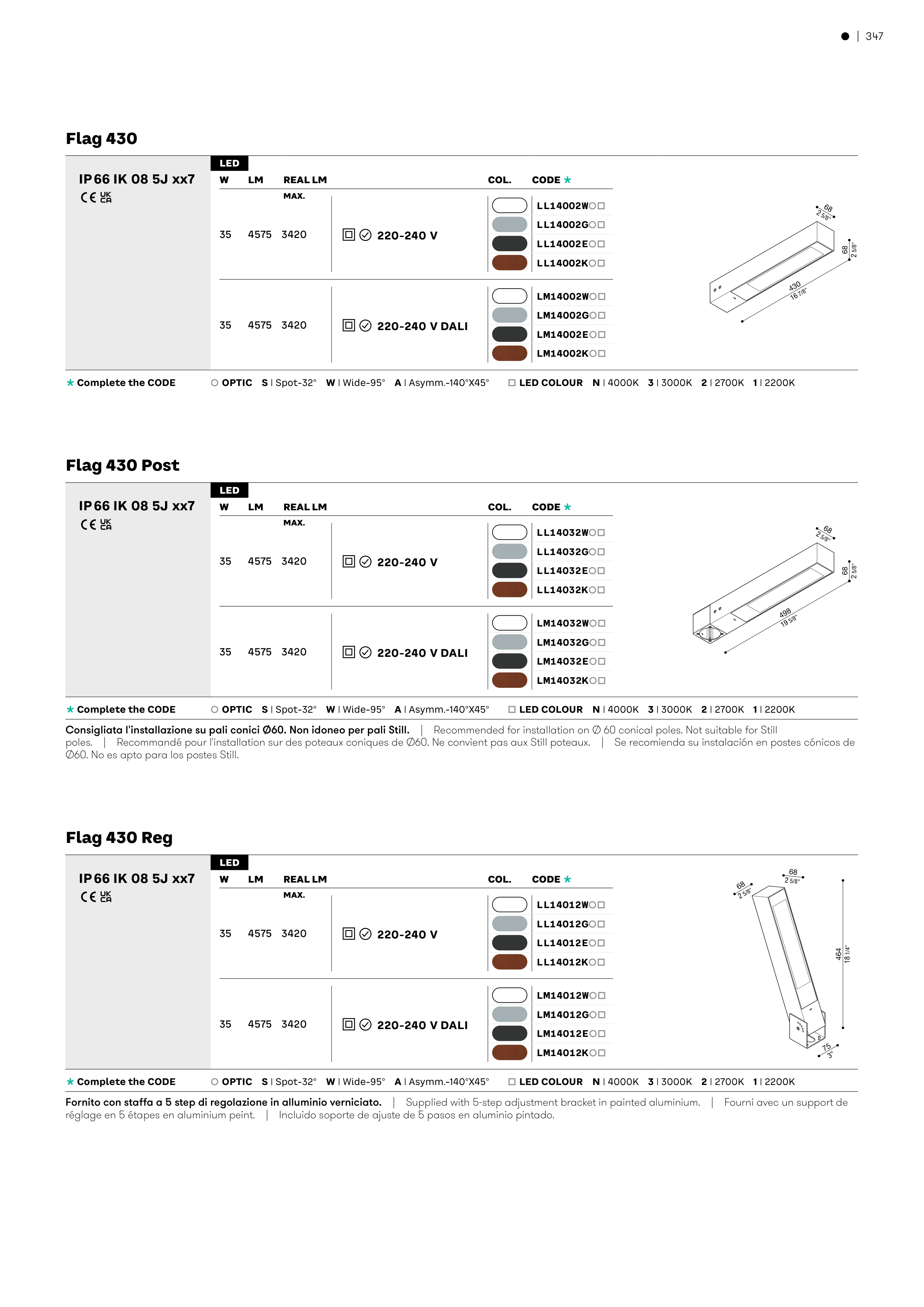 È OPTIC S | Spot-32° W | Wide-95° A | Asymm.-140°X45° Ä LED COLOUR N | 4000K 3 | 3000K 2 | 2700K 1 | 2200K