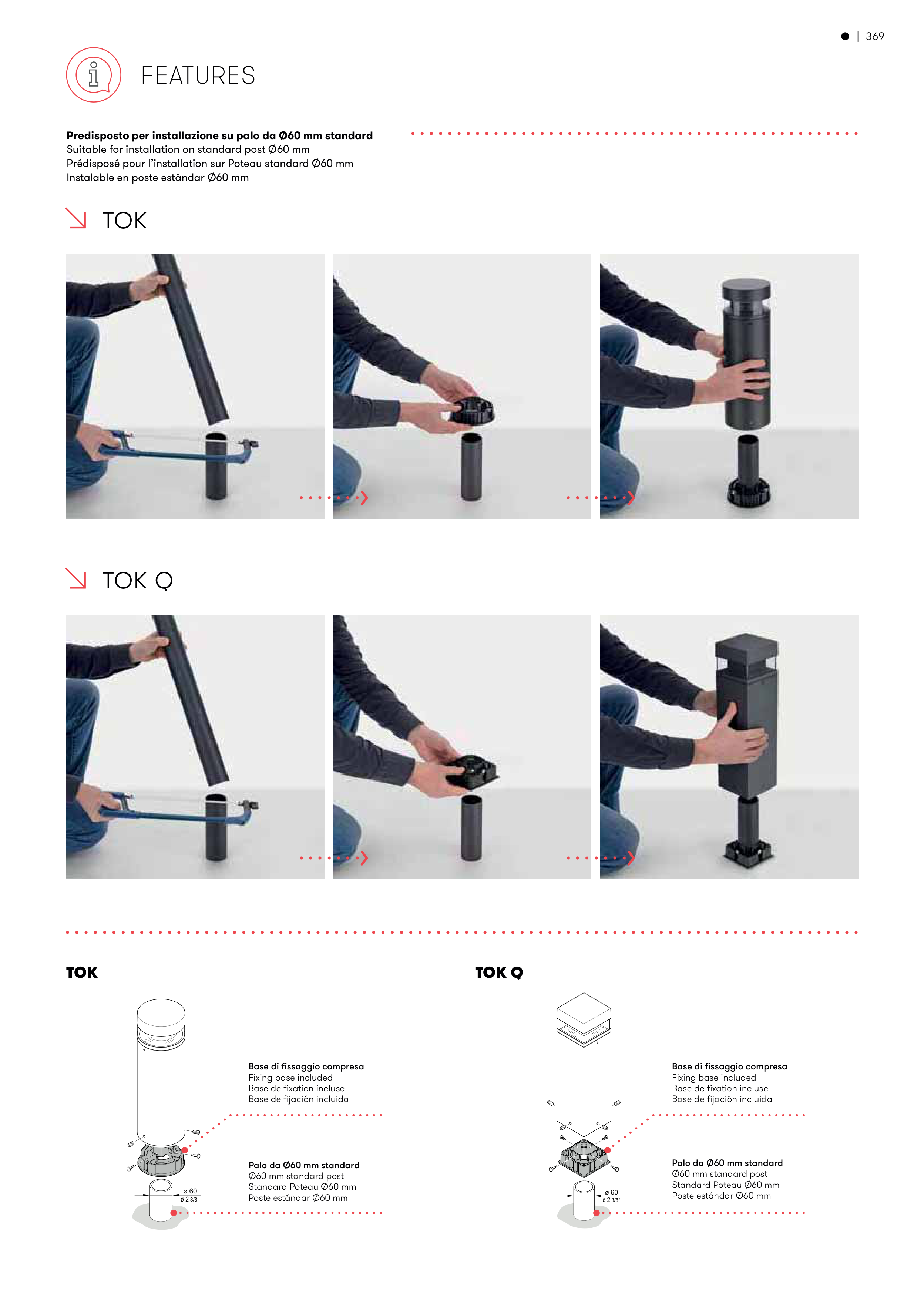 Prédisposé pour l’installation sur Poteau standard Ø60 mm