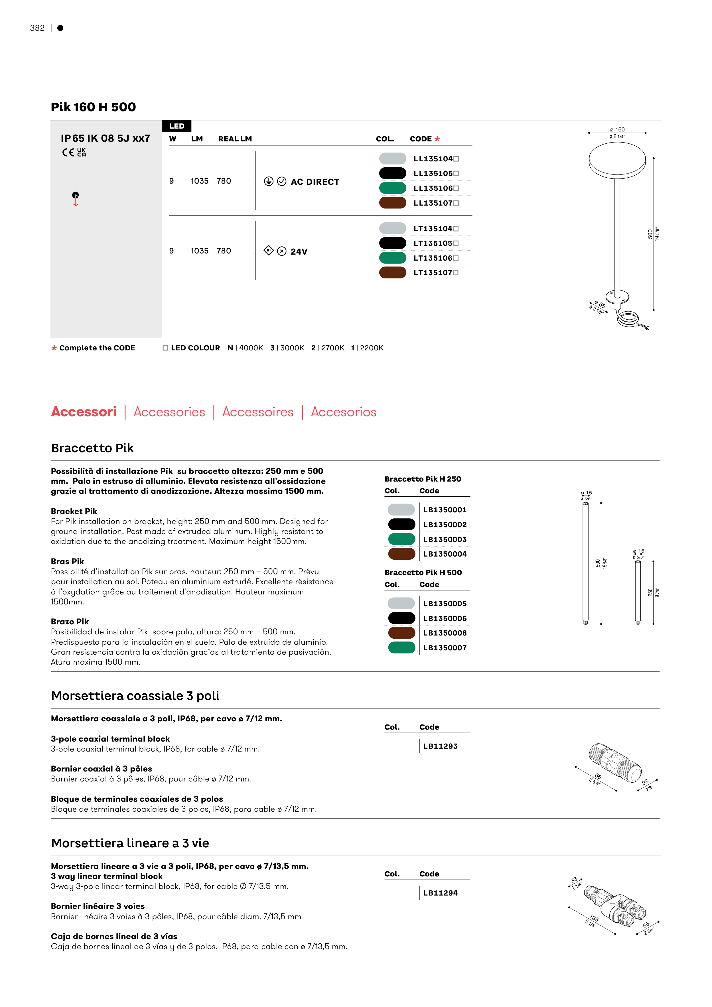 For Pik installation on bracket, height: 250 mm and 500 mm. Designed for