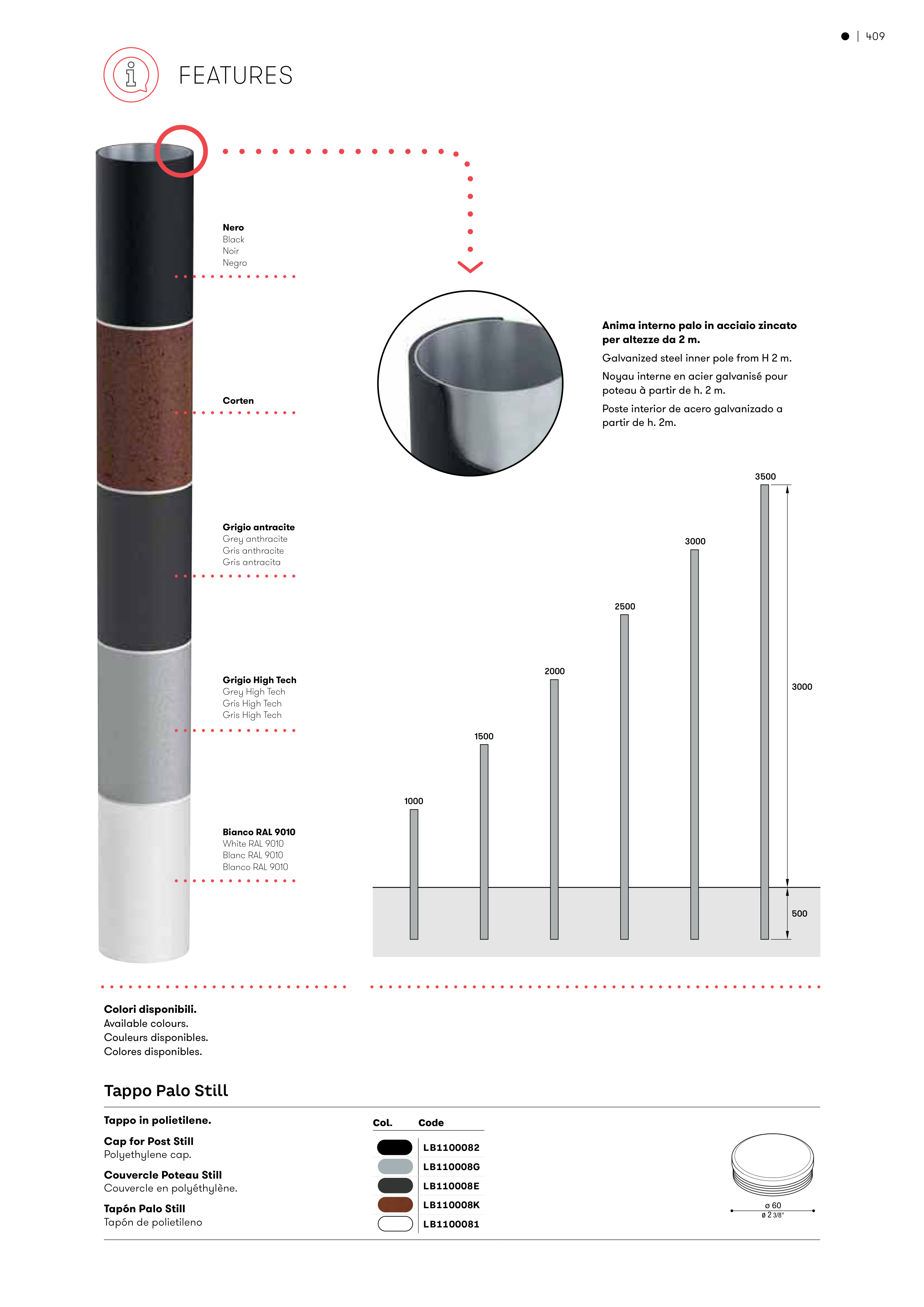 Galvanized steel inner pole from H 2 m.