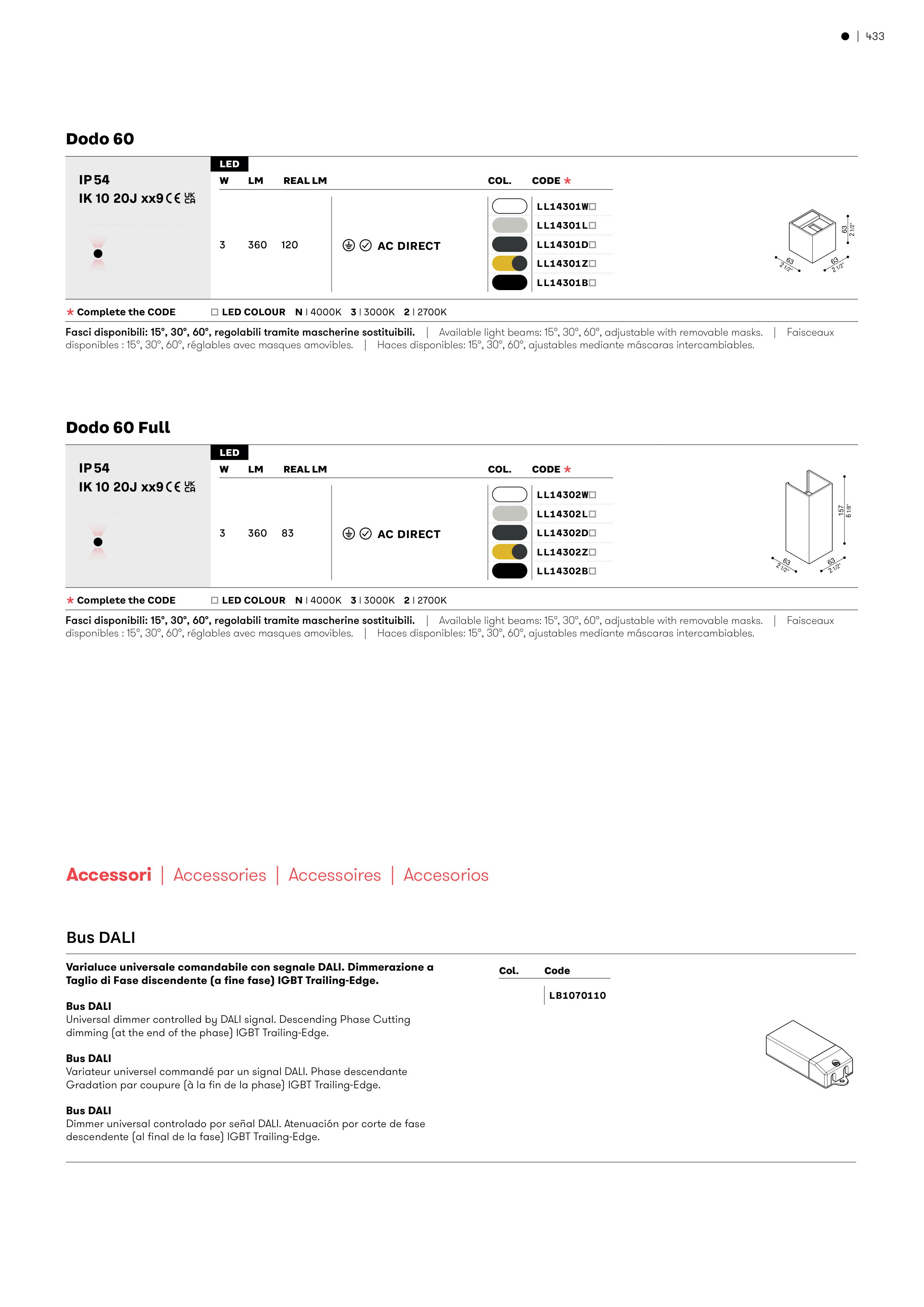 Fasci disponibili: 15°, 30°, 60°, regolabili tramite mascherine sostituibili.� �� ����������������������������������������������������������������������� �� ����������