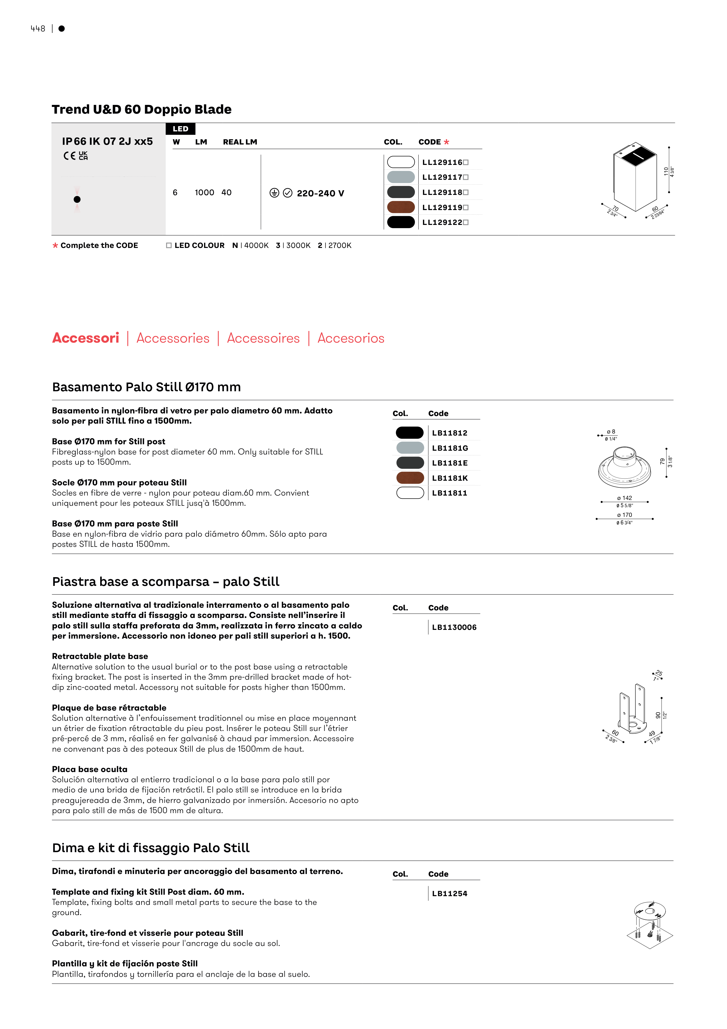 per immersione. Accessorio non idoneo per pali still superiori a h. 1500.