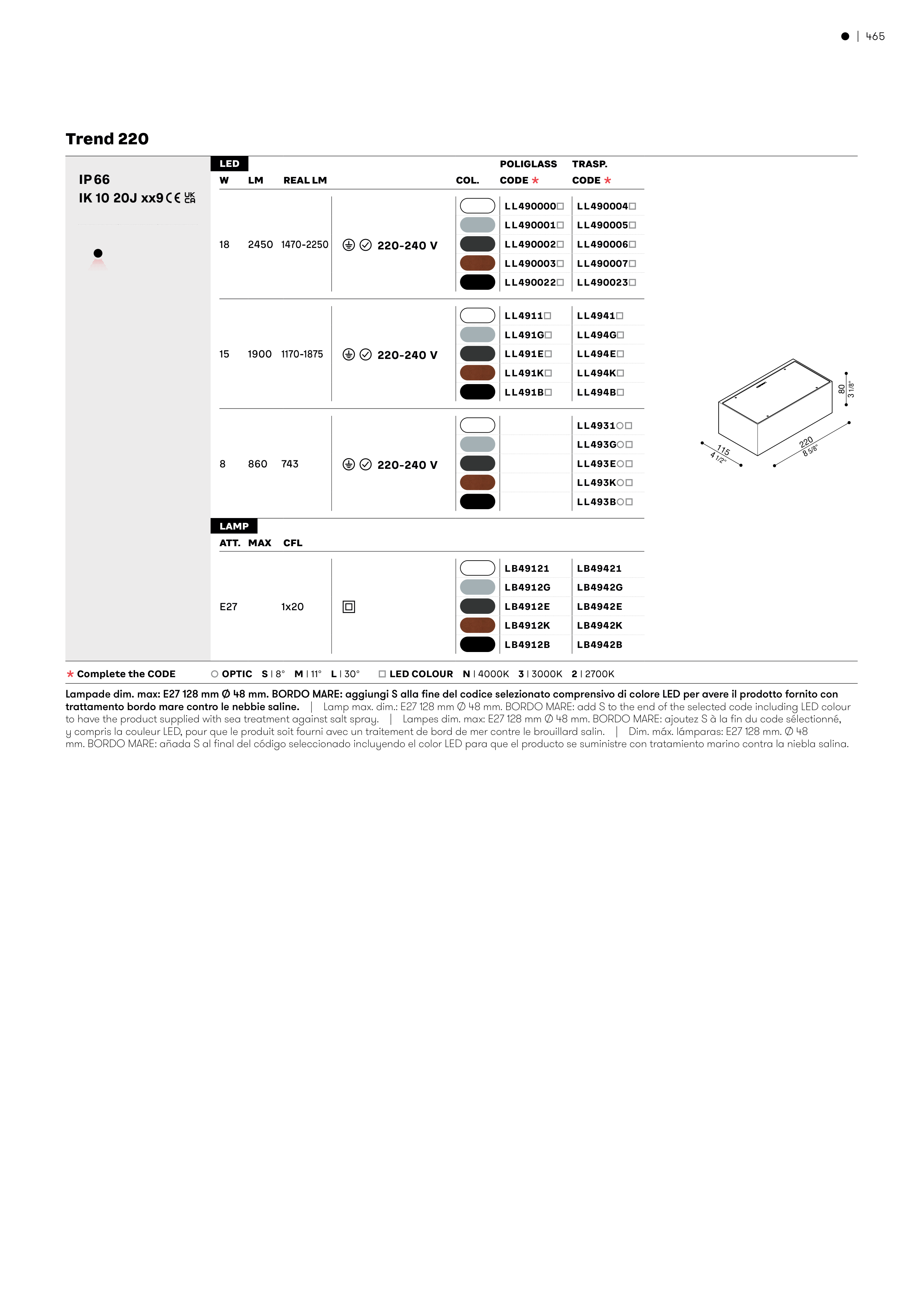 È OPTIC S | 8° M | 11° L | 30° Ä LED COLOUR N | 4000K 3 | 3000K 2 | 2700K