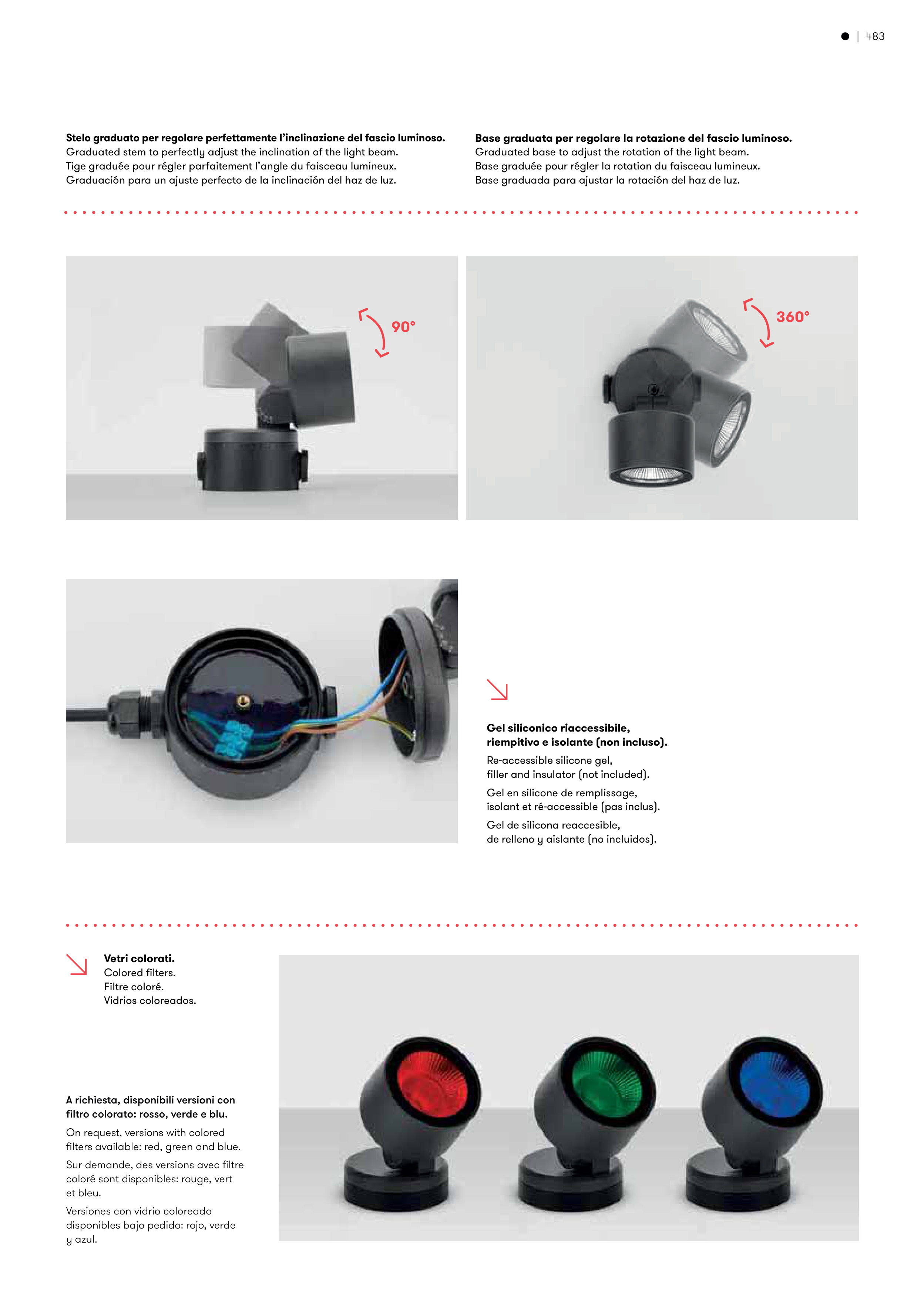 Stelo graduato per regolare perfettamente l’inclinazione del fascio luminoso.