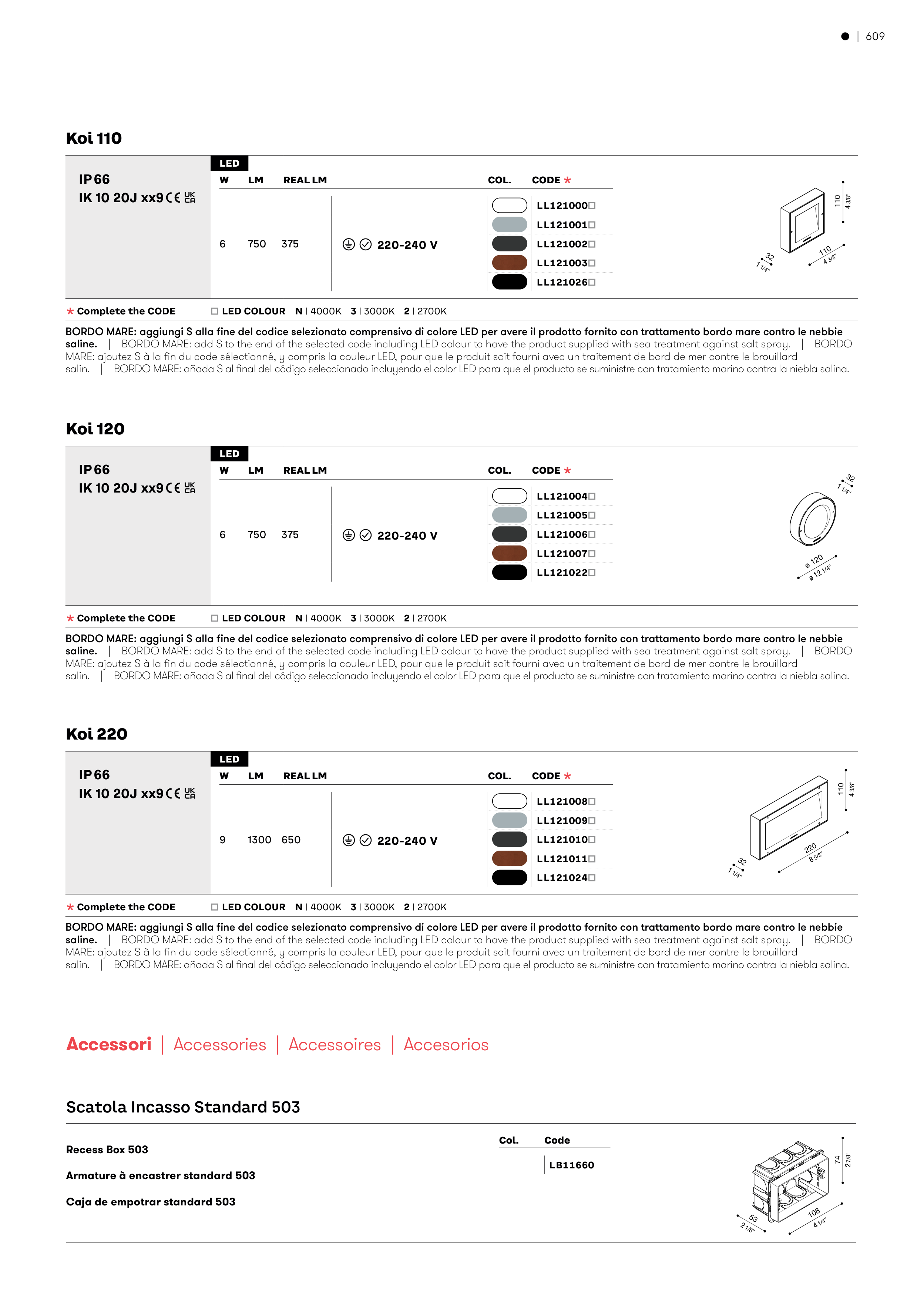BORDO MARE: aggiungi S alla fine del codice selezionato comprensivo di colore LED per avere il prodotto fornito con trattamento bordo mare contro le nebbie