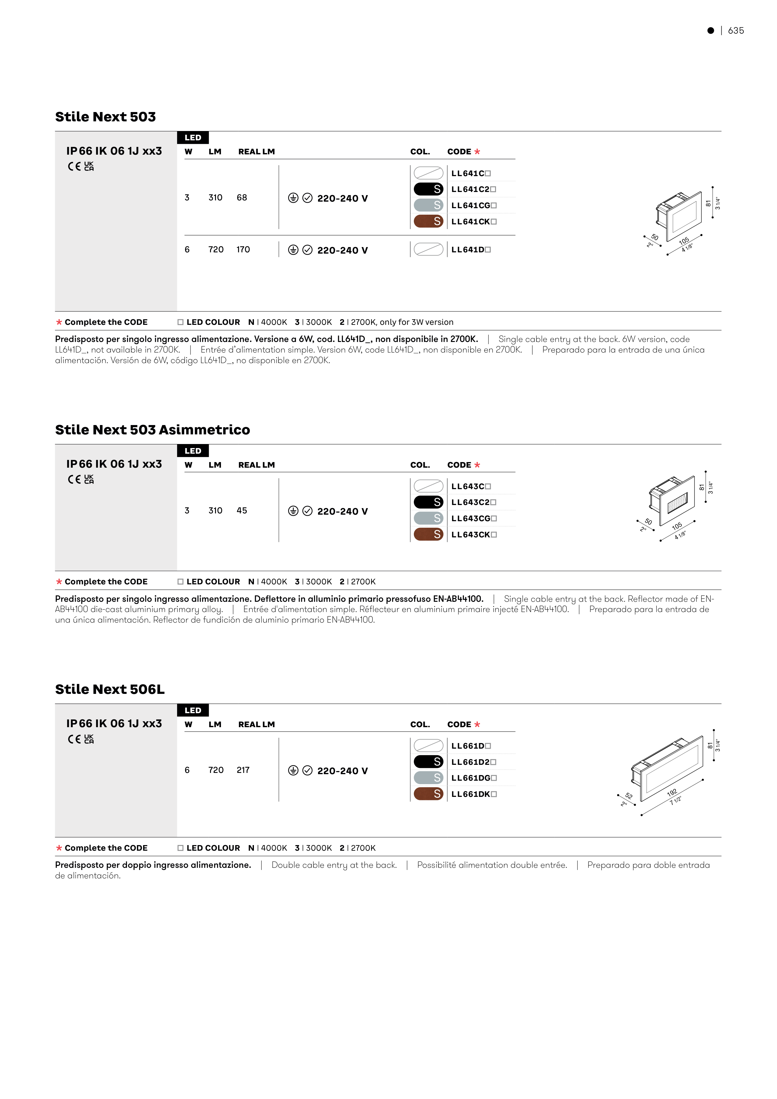 Predisposto per singolo ingresso alimentazione. Versione a 6W, cod. LL641D_, non disponibile in 2700K.� �� �������������������������������������������������