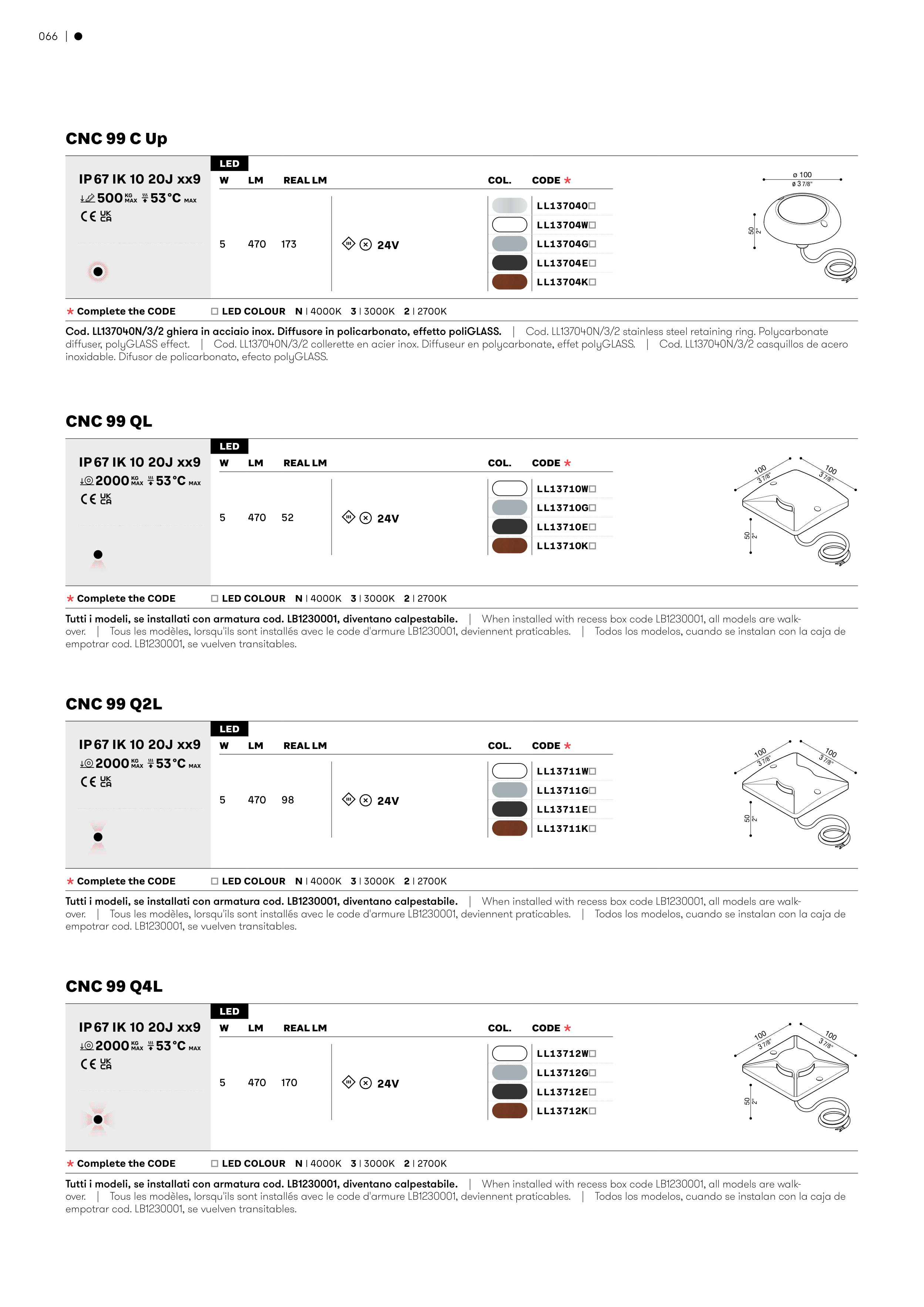 Tutti i modeli, se installati con armatura cod. LB1230001, diventano calpestabile.� �� �������������������������������������������������������������������