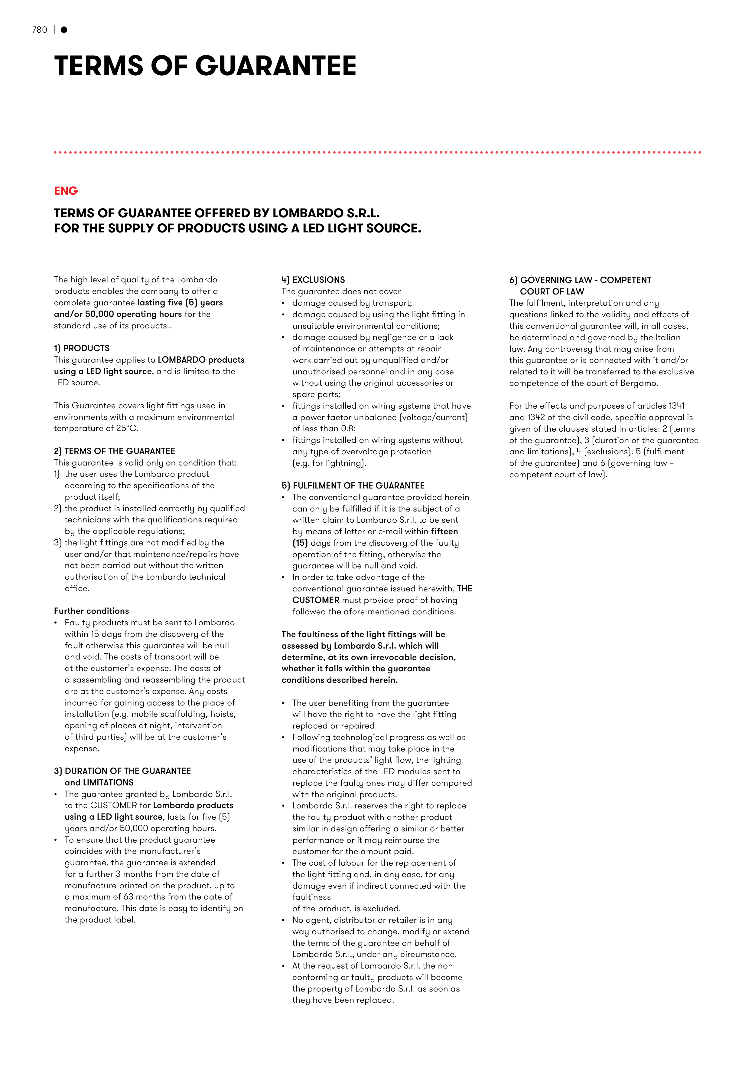 This guarantee applies to LOMBARDO products