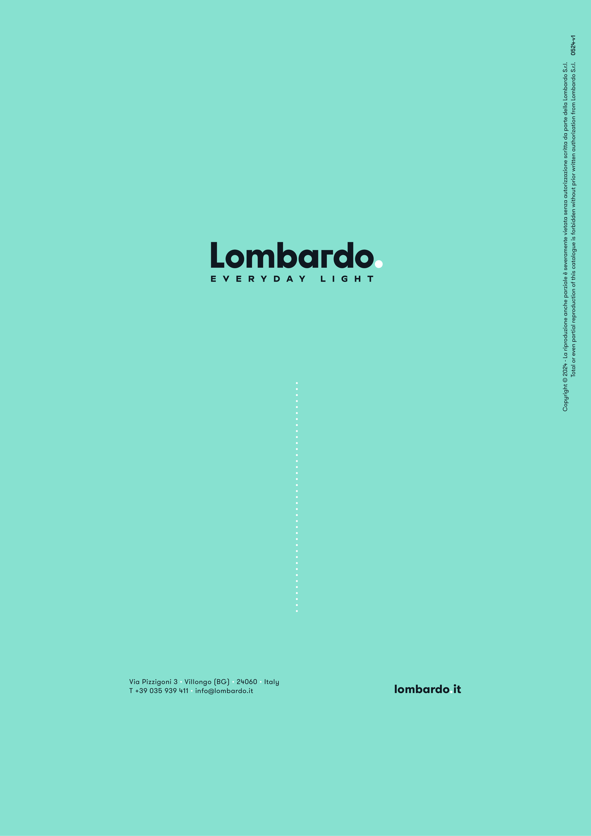 Total or even partial reproduction of this catalogue is forbidden without prior written authorization from Lombardo S.r.l.