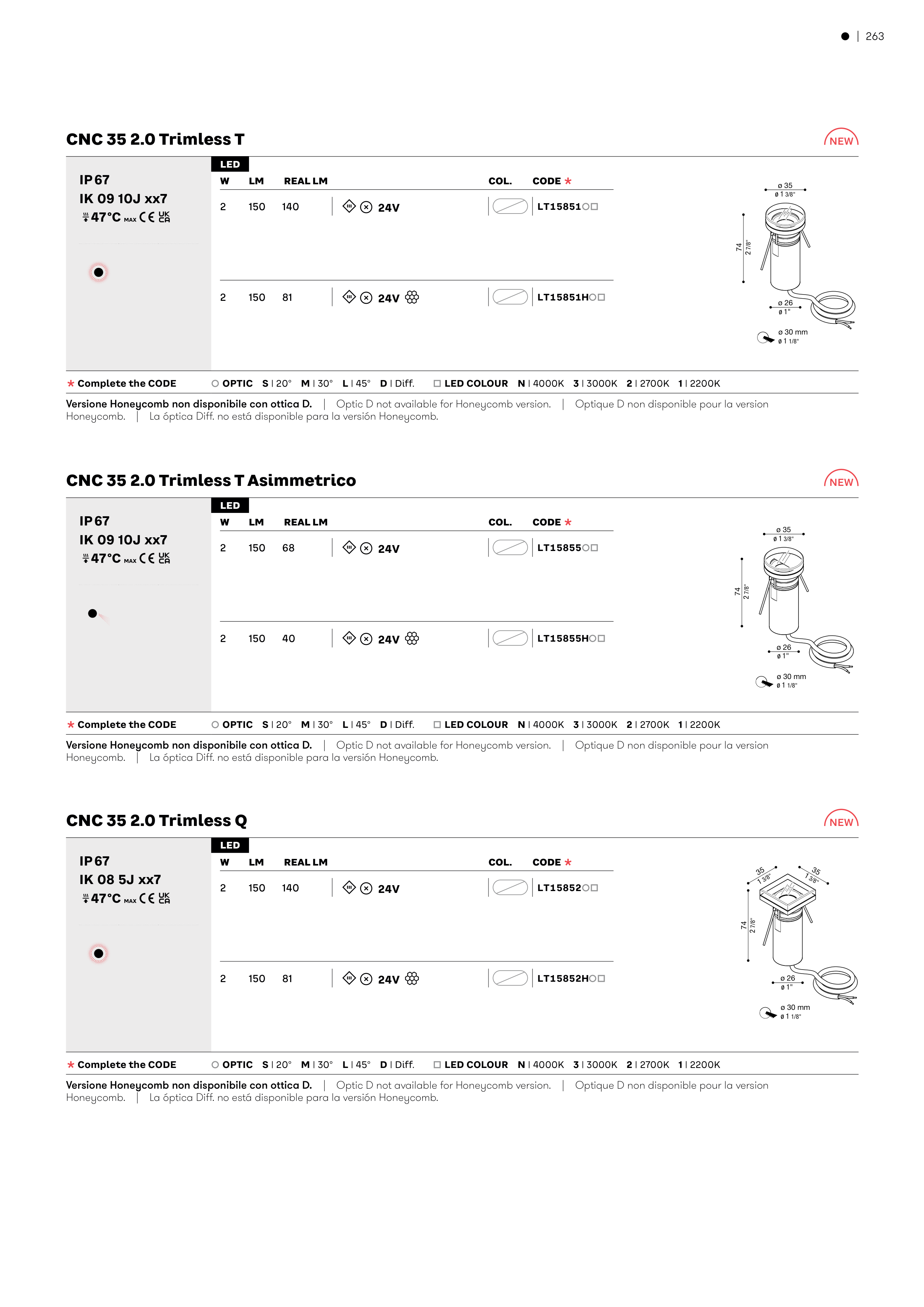 Versione Honeycomb non disponibile con ottica D.� �� ��������������������������������������������� �� �����������������������������������������