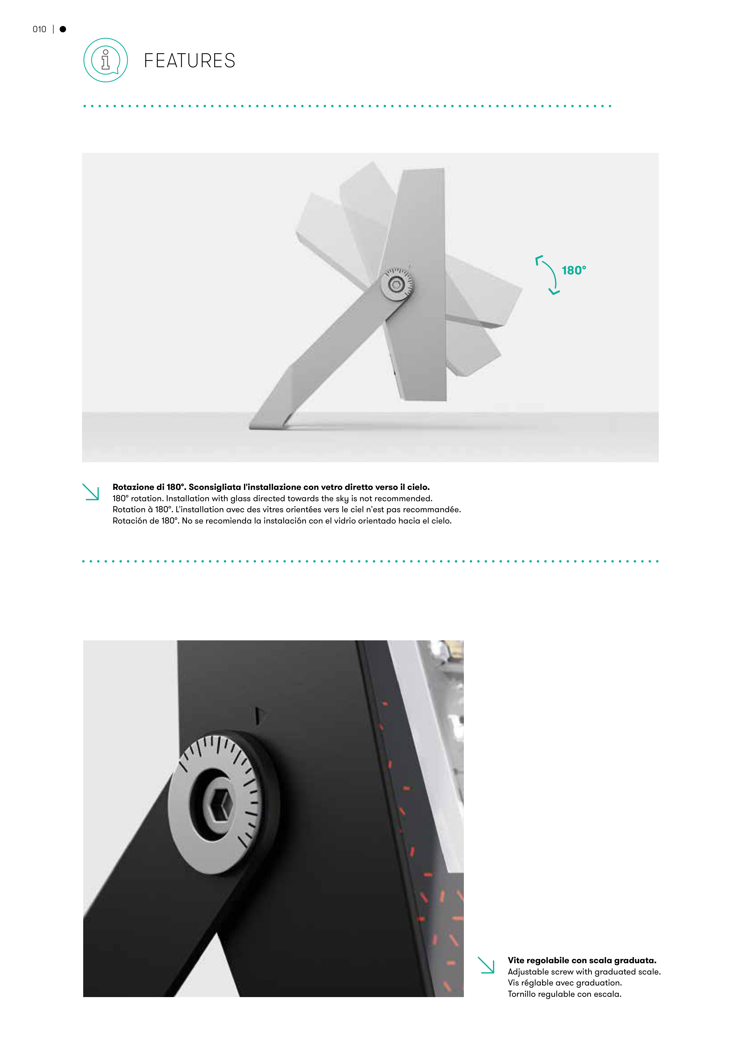 180° rotation. Installation with glass directed towards the sky is not recommended.