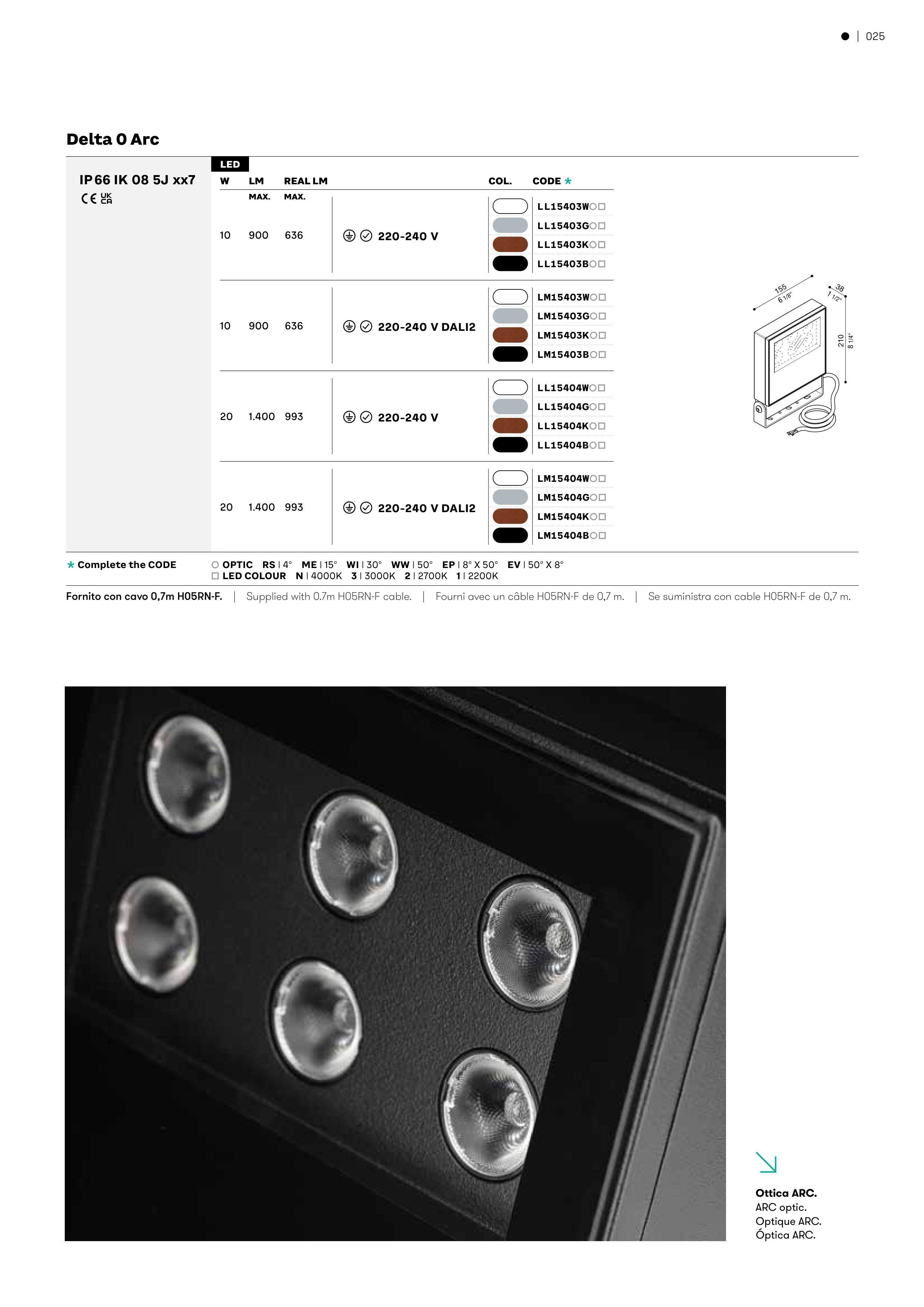 Fornito con cavo 0,7m H05RN-F. | Supplied with 0.7m H05RN-F cable. | Fourni avec un câble H05RN-F de 0,7 m. | Se suministra con cable H05RN-F de 0,7 m.